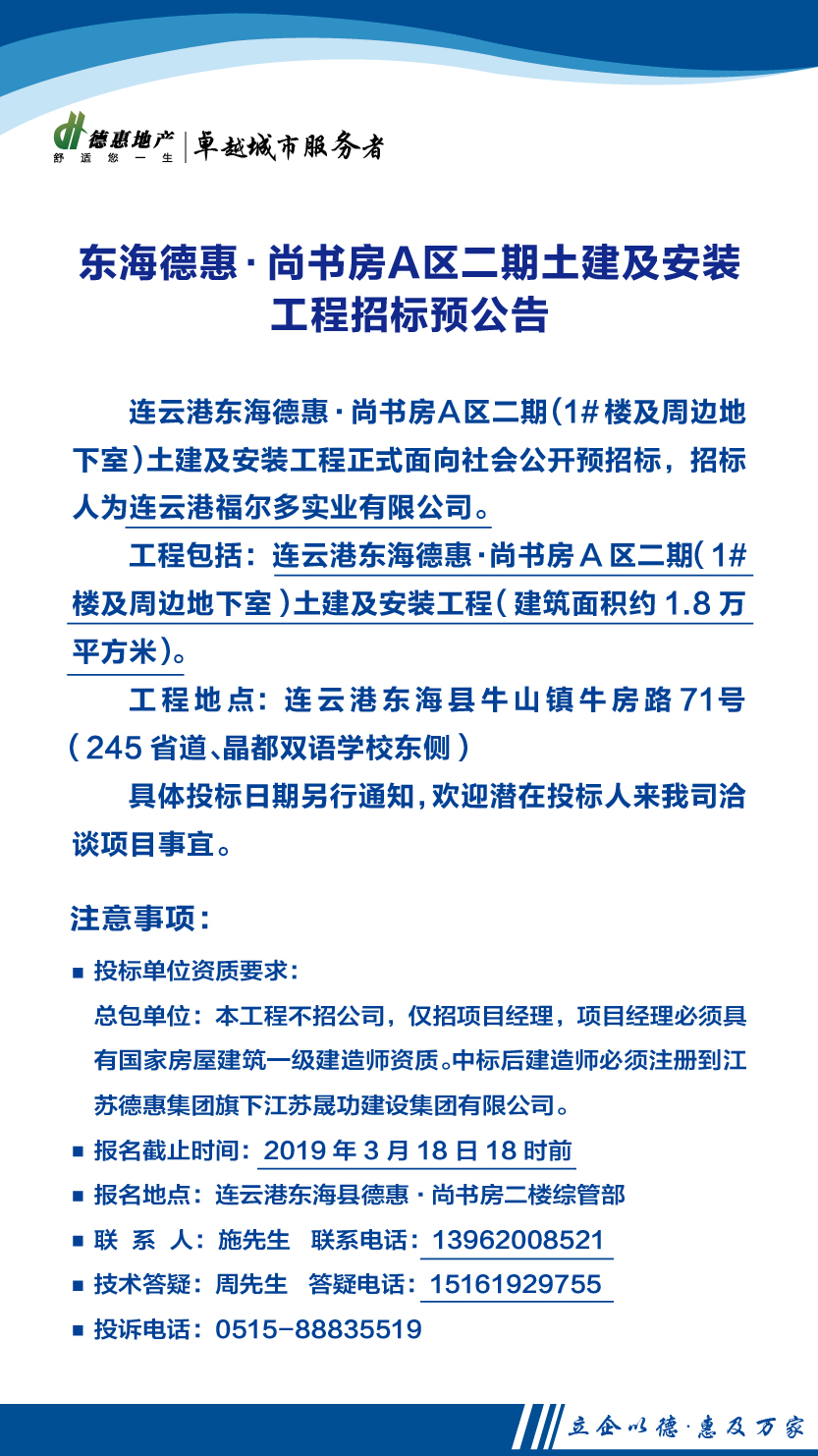 東海德惠·尚書房A區(qū)二期土建及安裝工程招標預(yù)公告