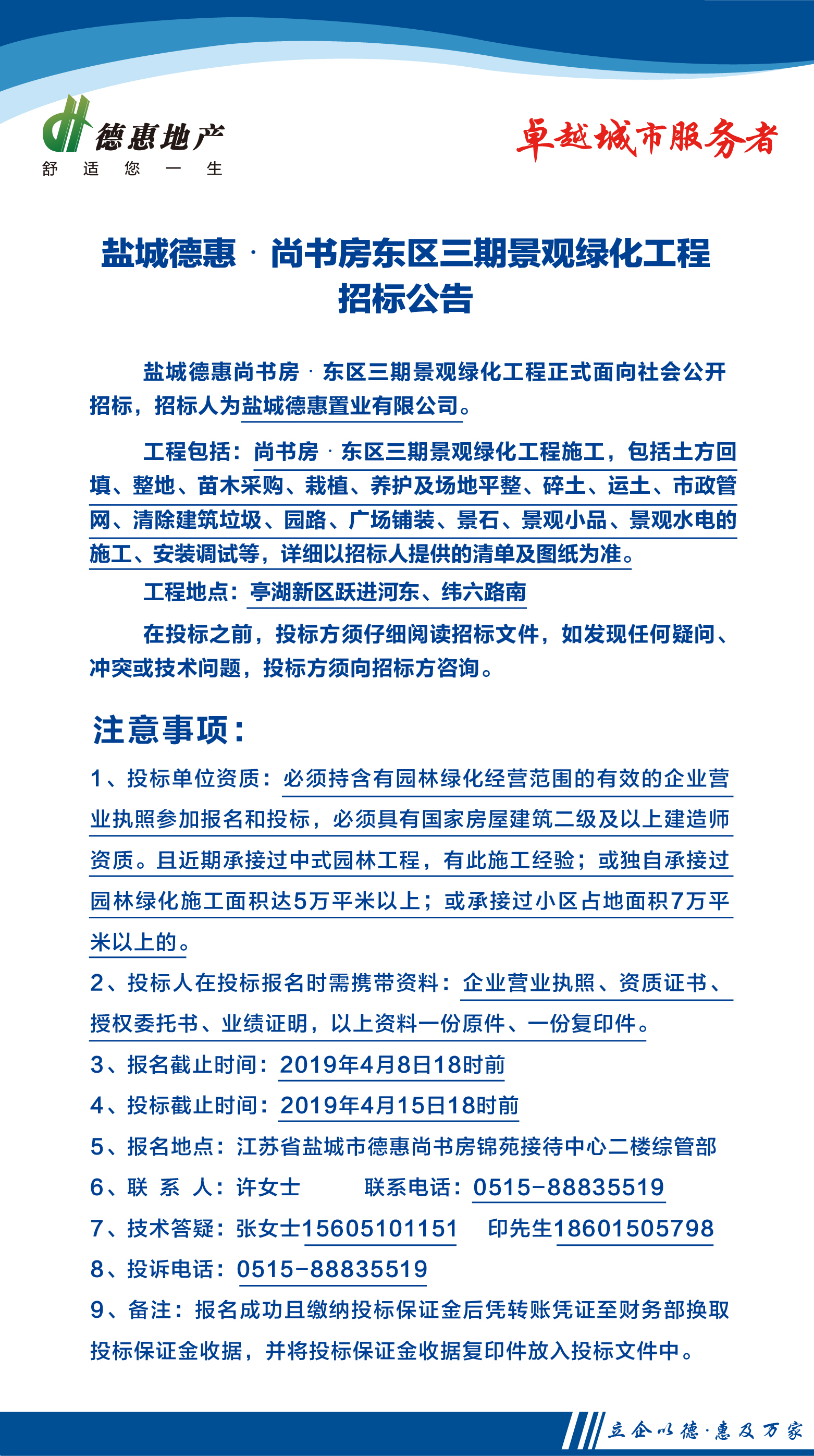 鹽城德惠·尚書(shū)房東區(qū)三期景觀綠化工程招標(biāo)公告