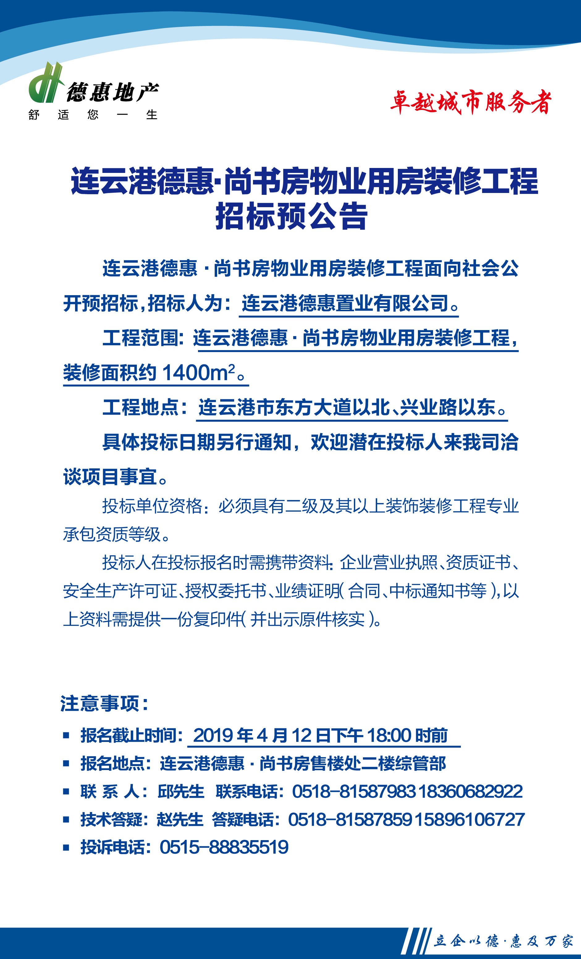 連云港德惠.尚書(shū)房物業(yè)用房裝修工程招標(biāo)預(yù)公告