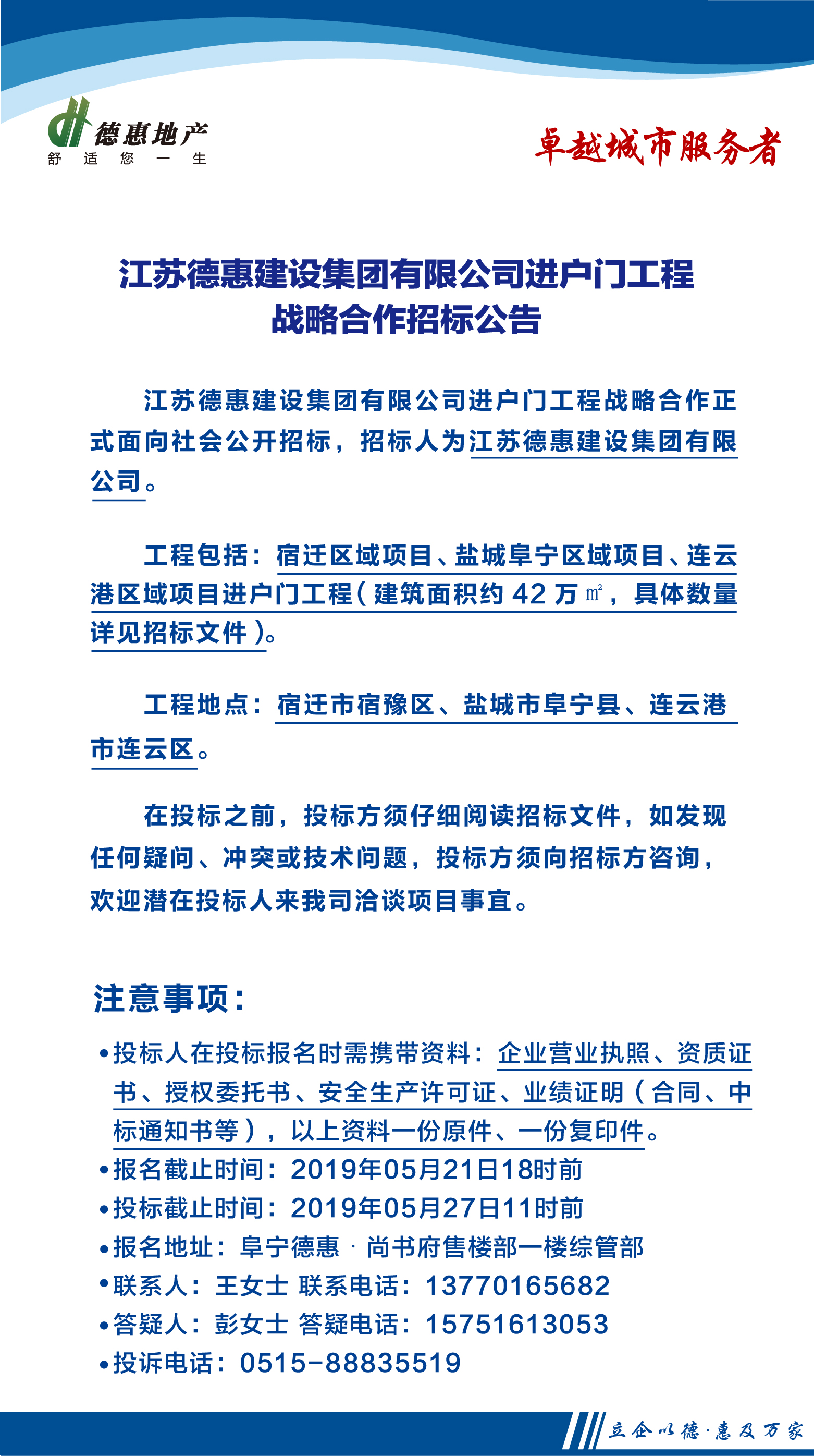 江蘇德惠建設(shè)集團(tuán)有限公司進(jìn)戶門工程戰(zhàn)略合作招標(biāo)公告
