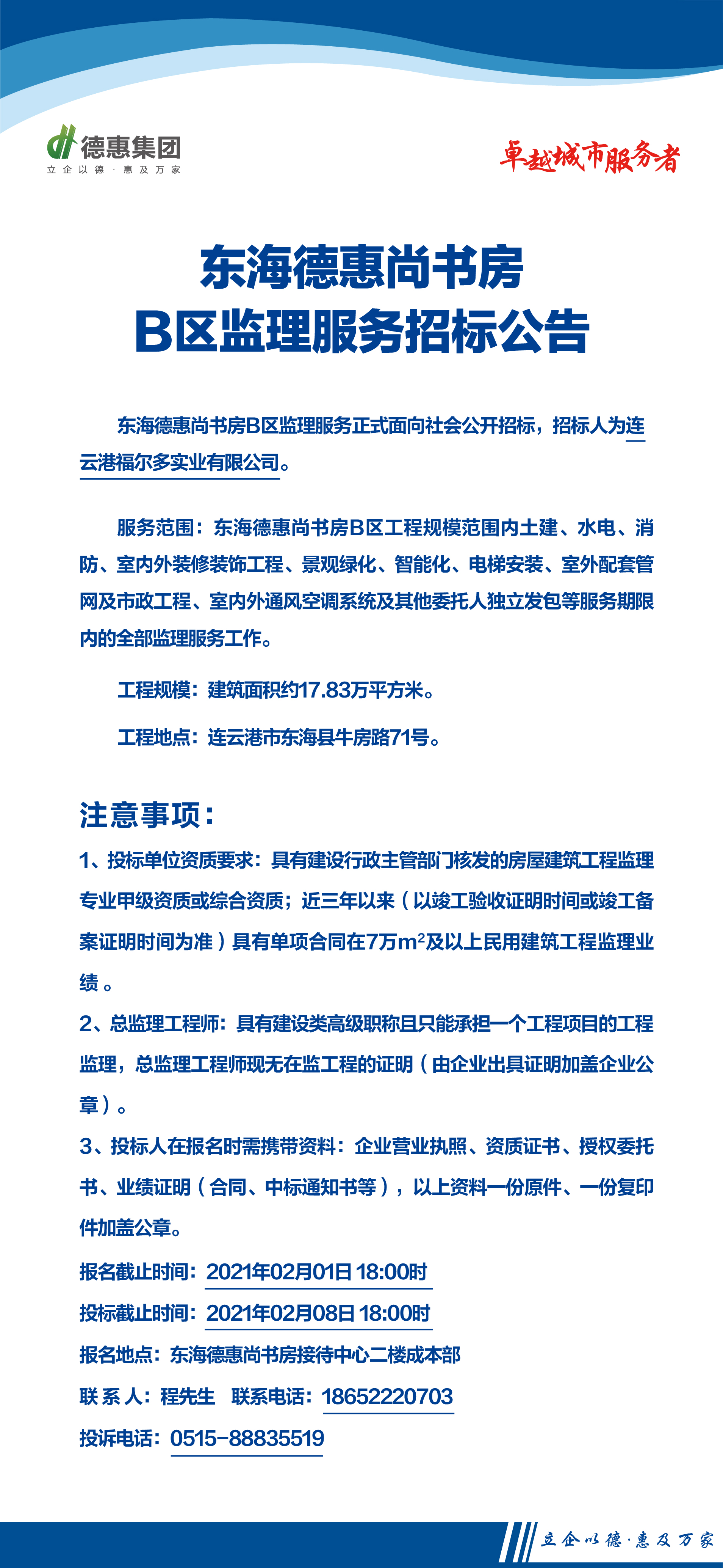 東海德惠尚書房B區(qū)監(jiān)理服務(wù)招標(biāo)公告