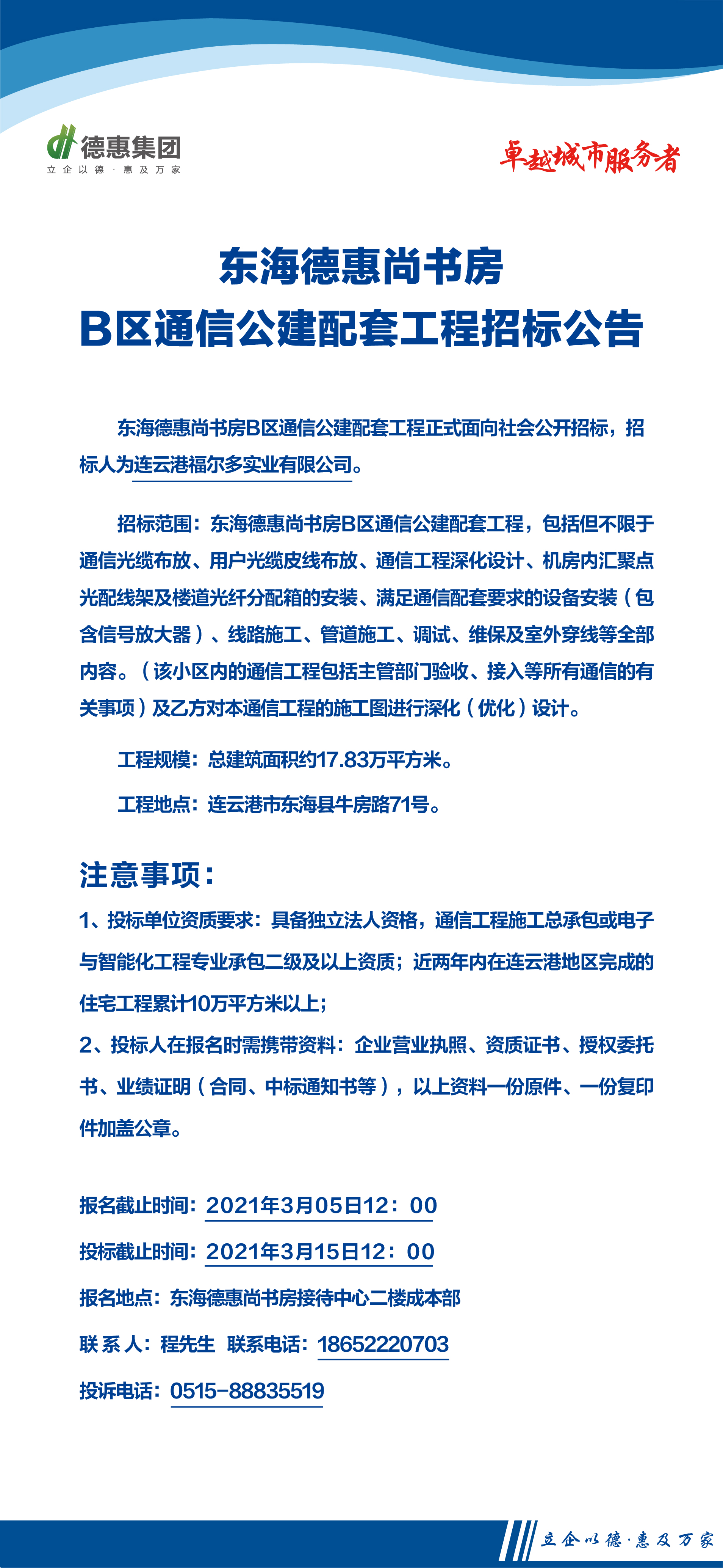 東海德惠尚書房B區(qū)通信公建配套工程招標公告