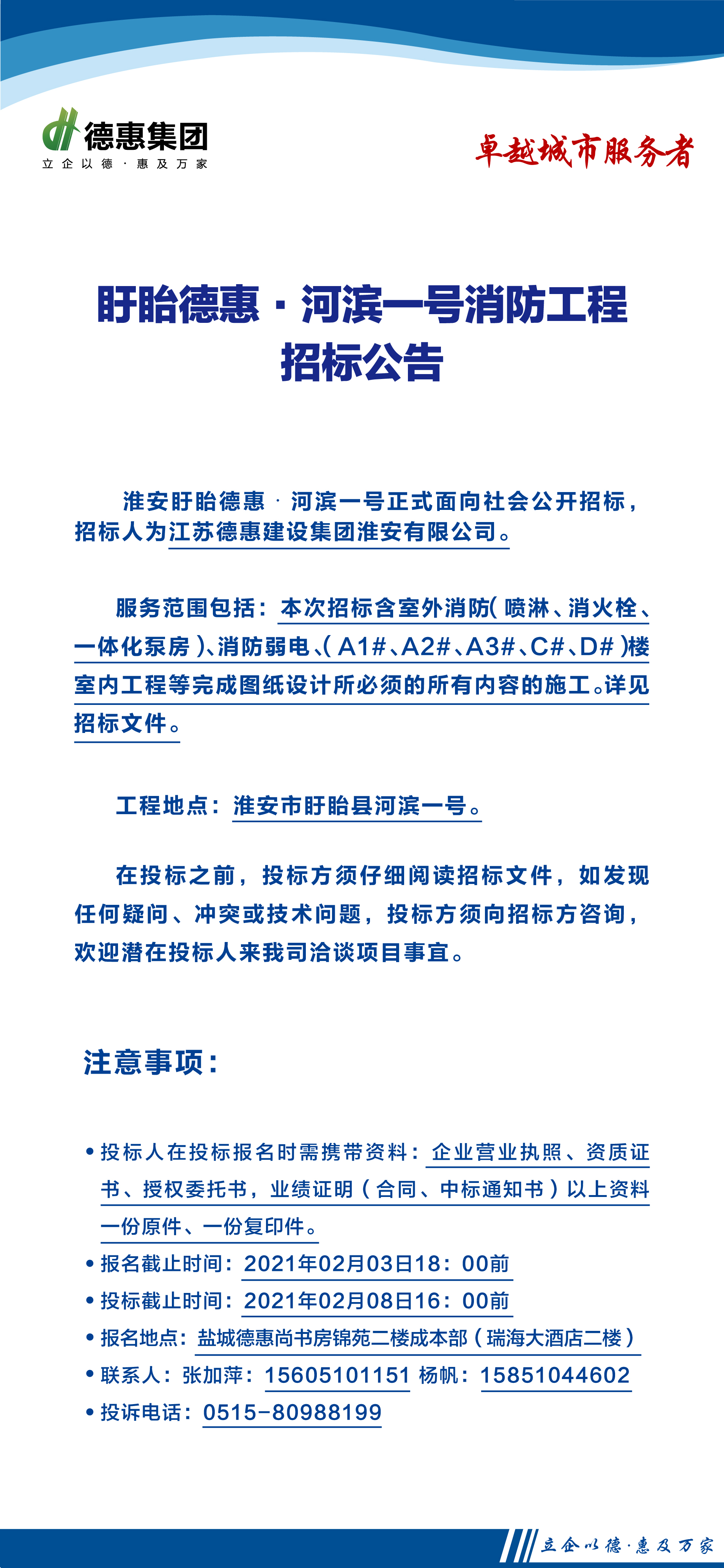 盱眙德惠·河濱一號消防工程招標公告