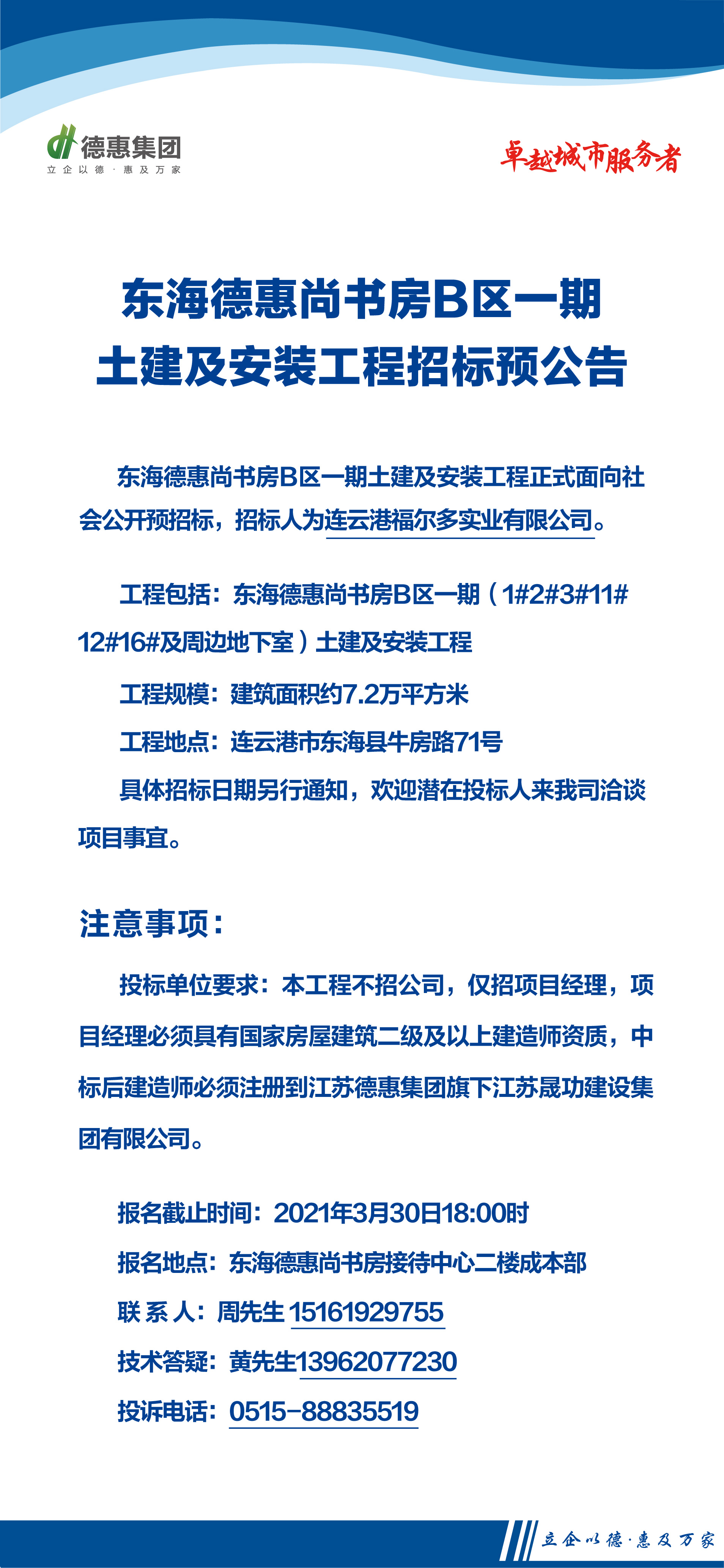 東海德惠尚書房B區(qū)一期土建及安裝工程招標公告