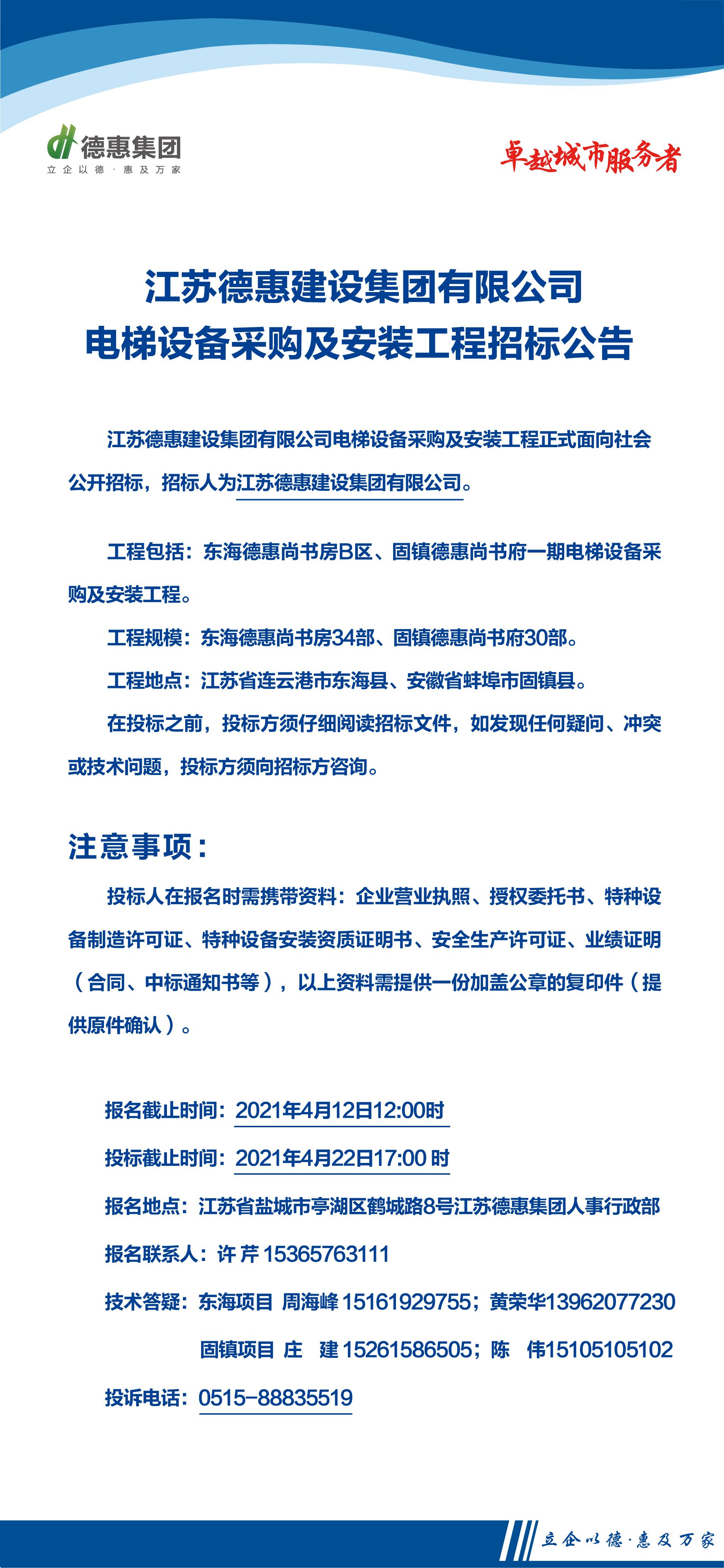 江蘇德惠建設(shè)集團有限公司電梯采購及安裝工程招標公告