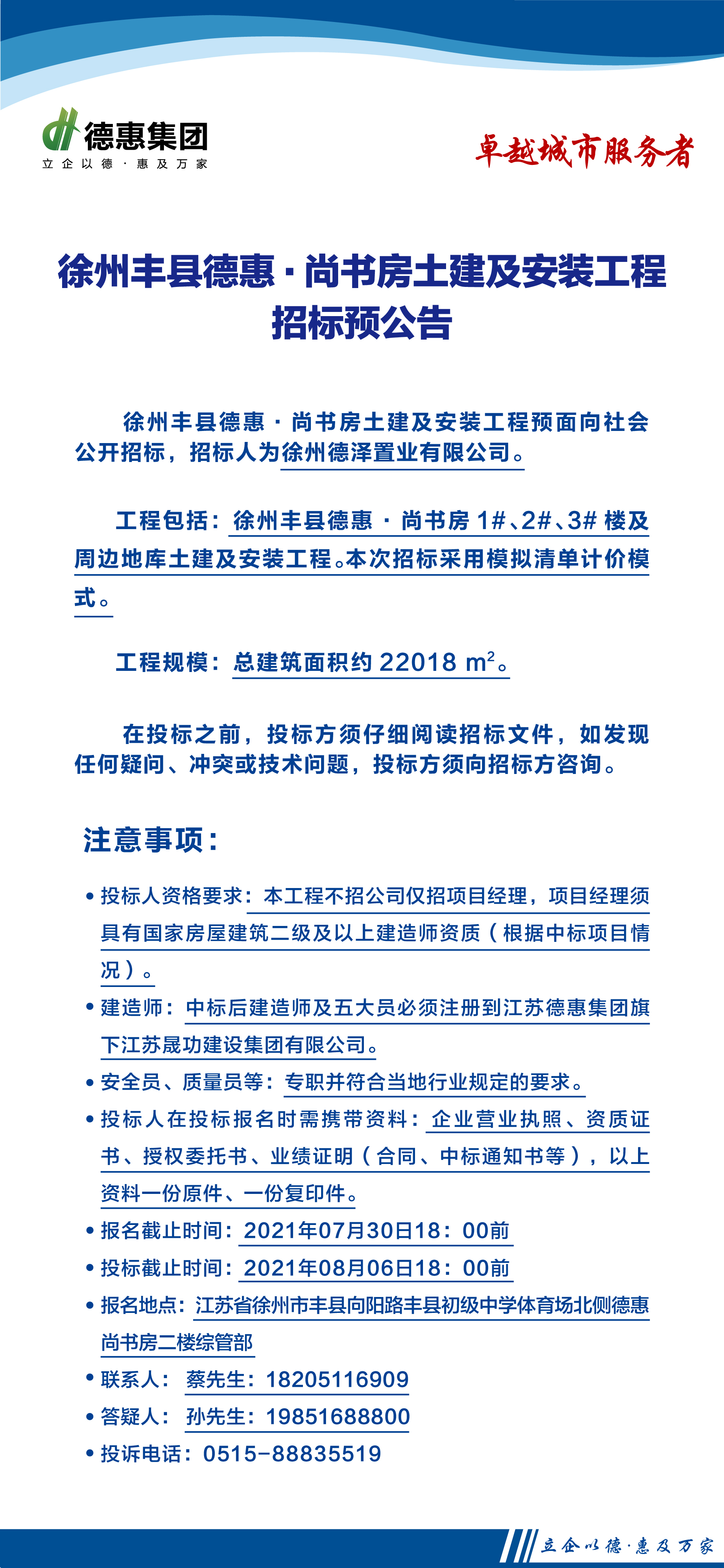 徐州豐縣德惠尚書房土建及安裝工程招標預公告