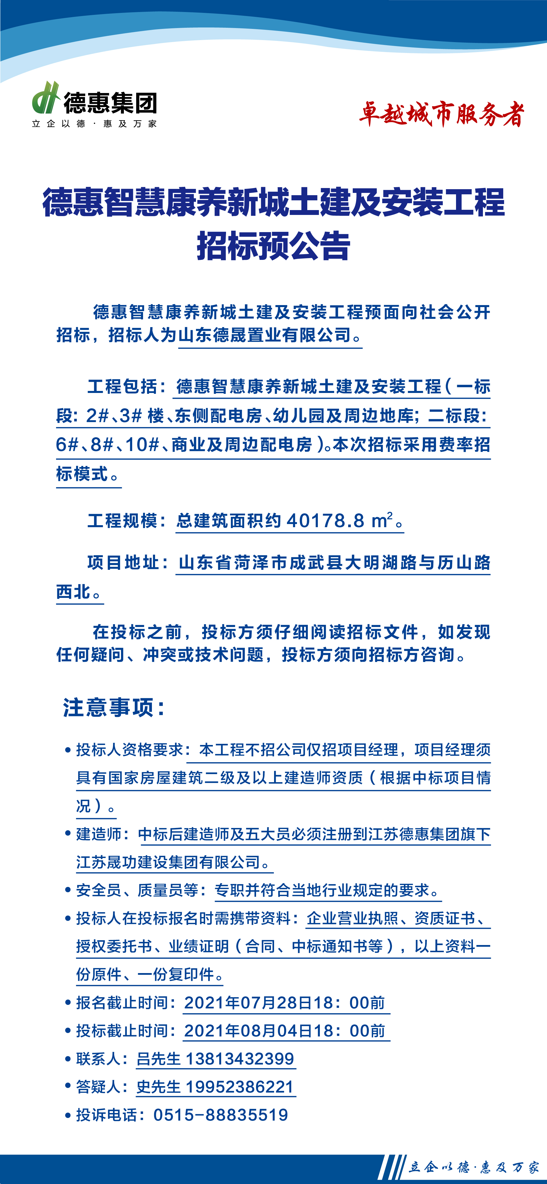 德惠智慧康養(yǎng)新城土建及安裝招標預(yù)公告