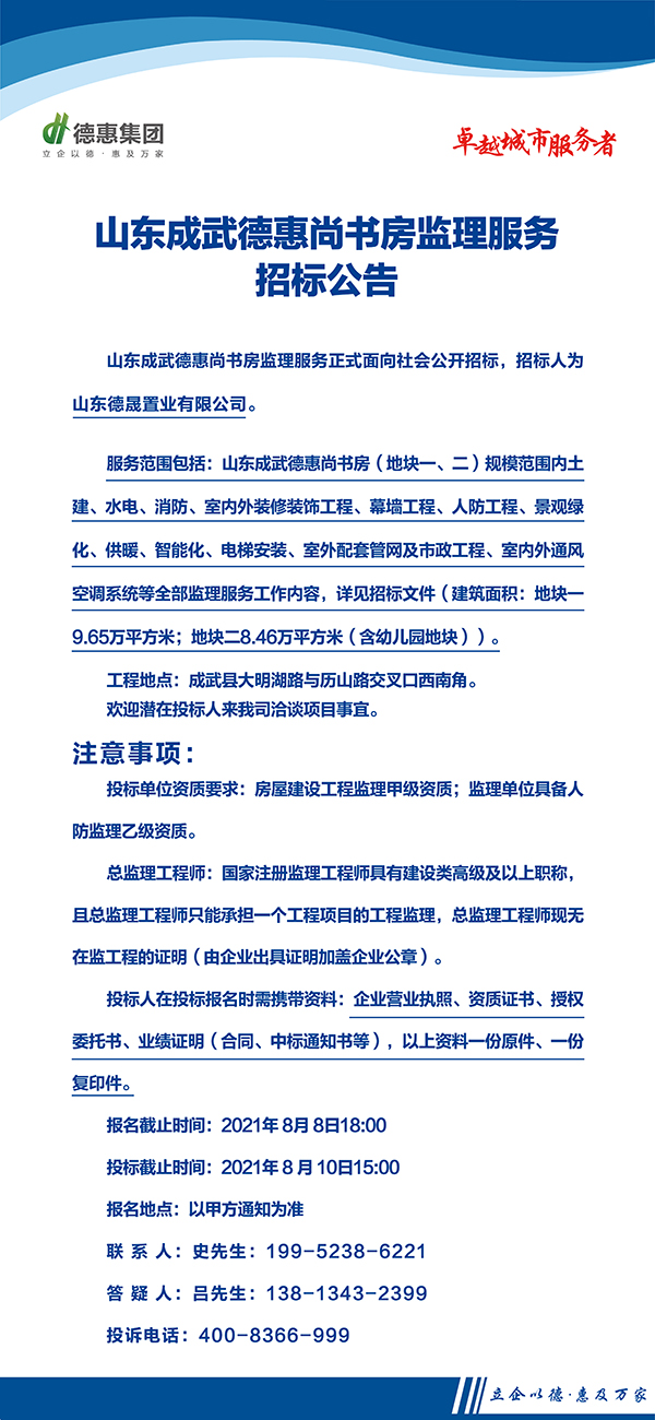 山東成武德惠尚書房監(jiān)理服務(wù)招標(biāo)公告