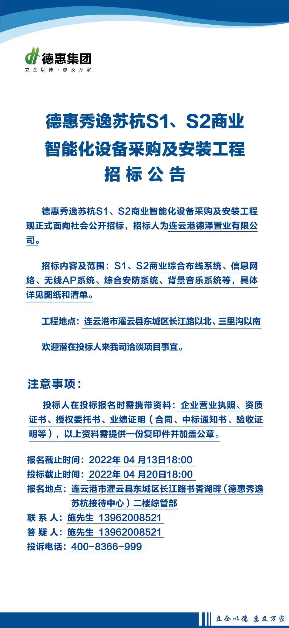 德惠秀逸蘇杭S1、S2商業(yè)智能化設(shè)備采購(gòu)及安裝工程