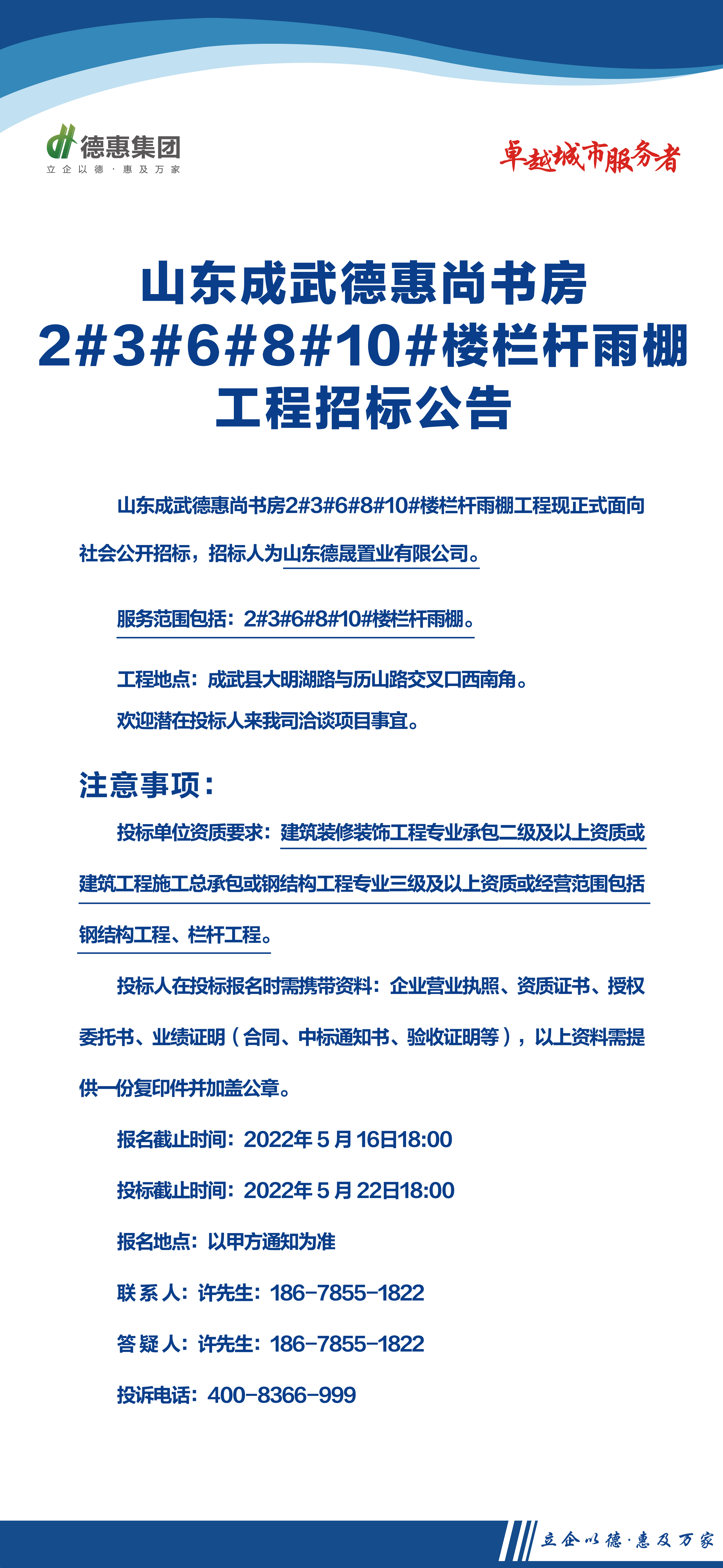 山東成武德惠尚書(shū)房2#、3#、6#、8#、10#樓欄桿雨棚工程