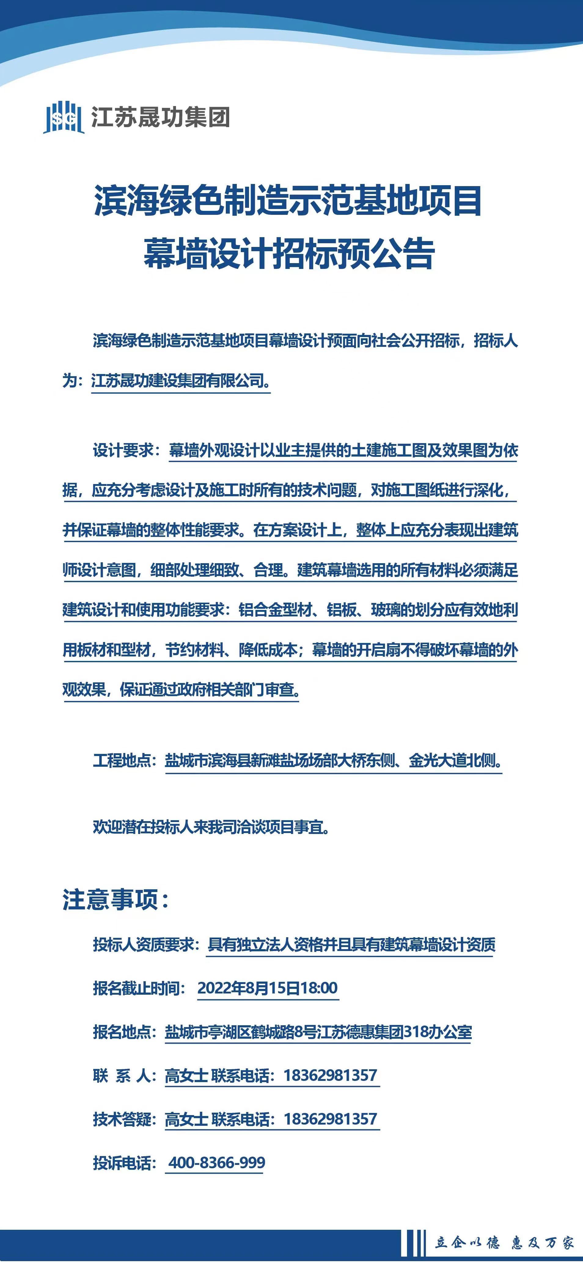 濱海綠色制造示范基地項目幕墻設(shè)計預(yù)招標(biāo)公告