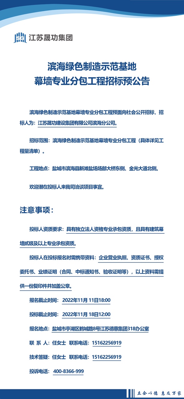 濱海綠色制造示范基地幕墻專業(yè)分包工程