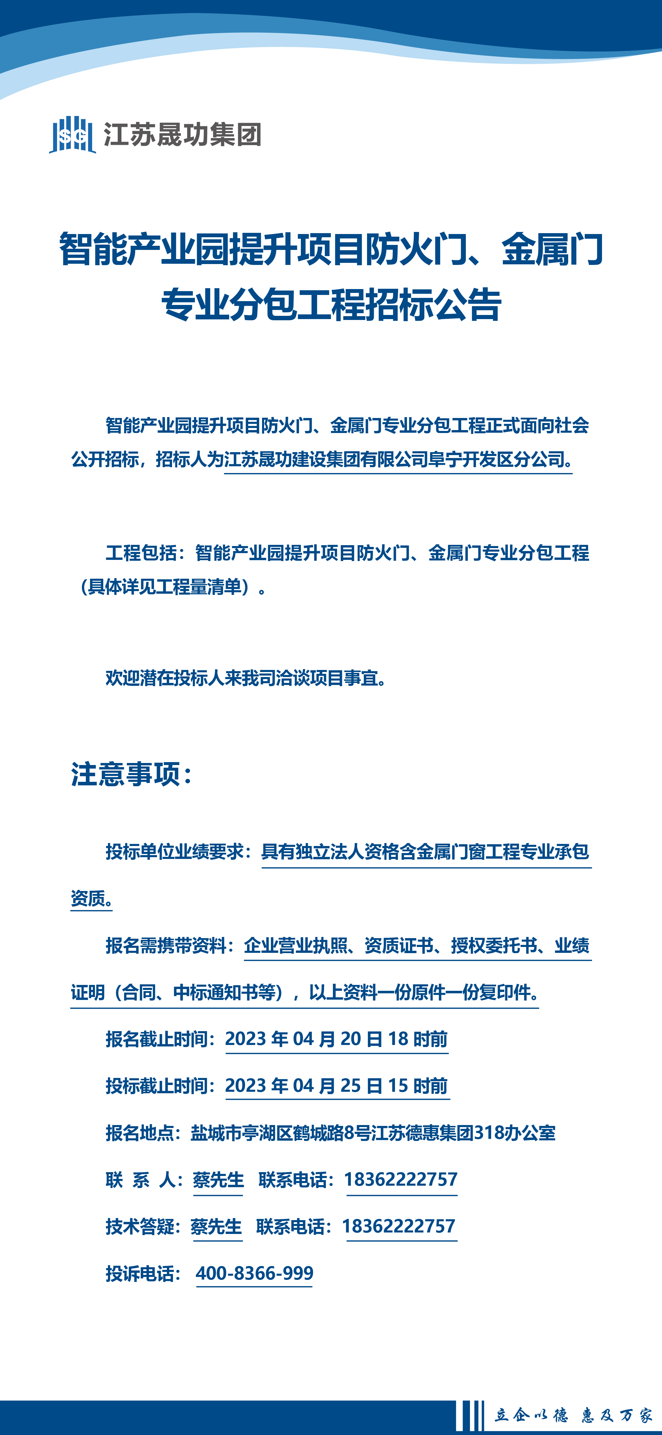 智能裝備產(chǎn)業(yè)園提升項目防火門、金屬門專業(yè)分包工程