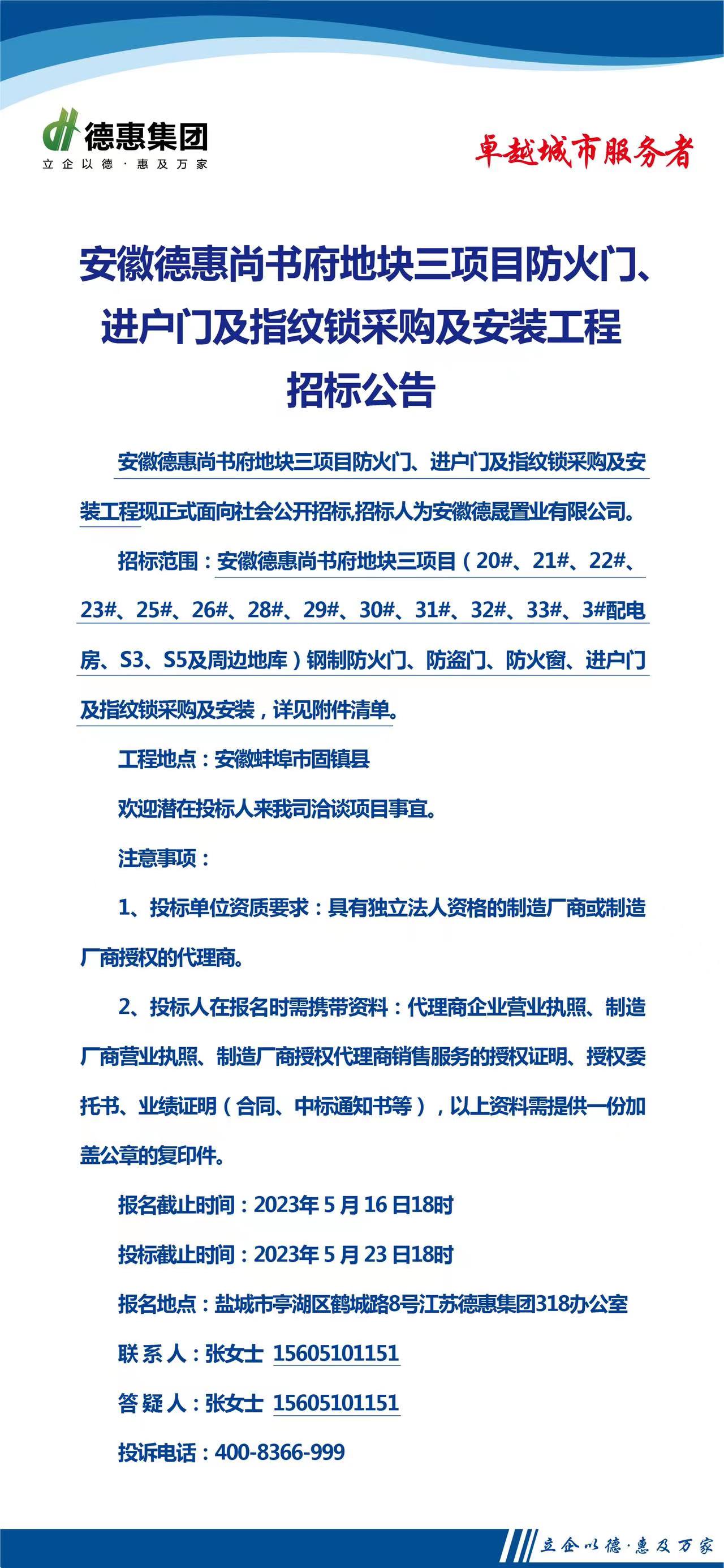 安徽德惠尚書府地塊三項目防火門、進(jìn)戶門專業(yè)分包工程