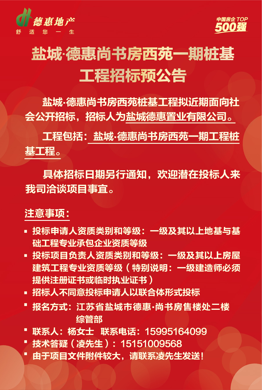 鹽城德惠尚書房西苑一期樁基工程招標(biāo)預(yù)公告