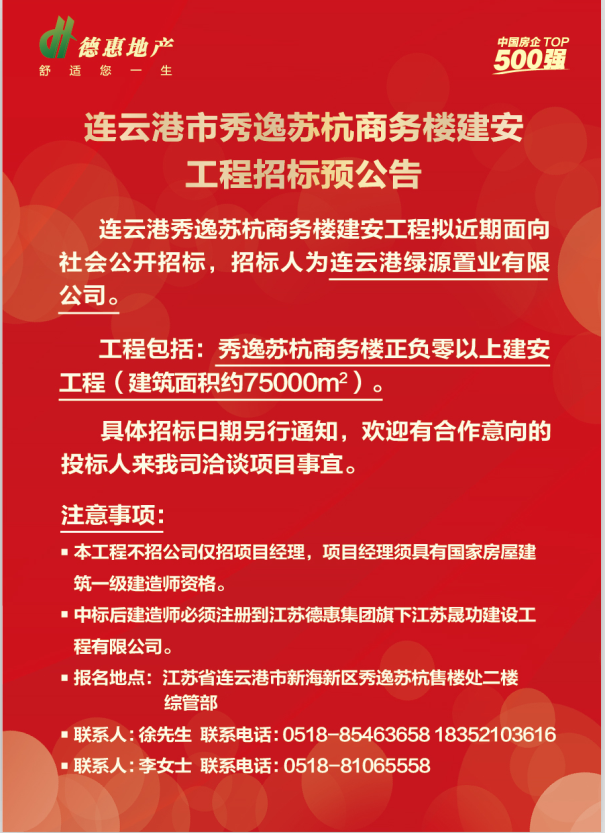 連云港 德惠·秀逸蘇杭商務(wù)樓建安工程招標(biāo)公告