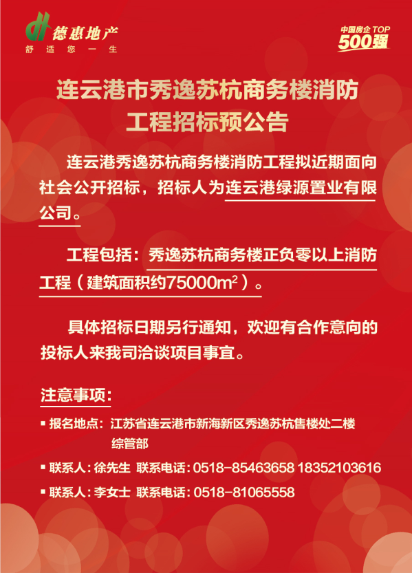 連云港 德惠·秀逸蘇杭商務樓消防工程招標公告
