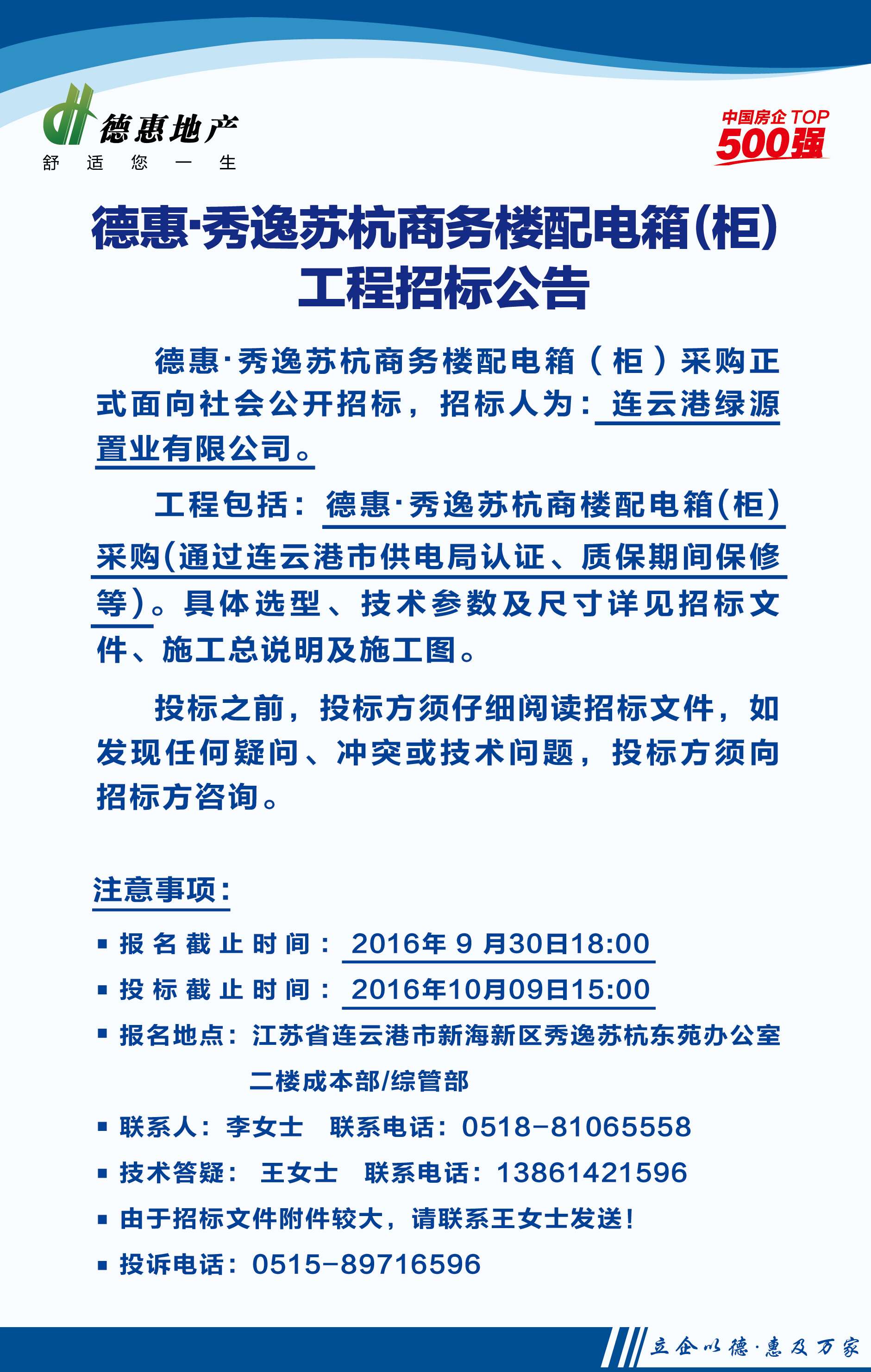 連云港德惠·秀逸蘇杭商務樓配電箱(采購)工程招標公告