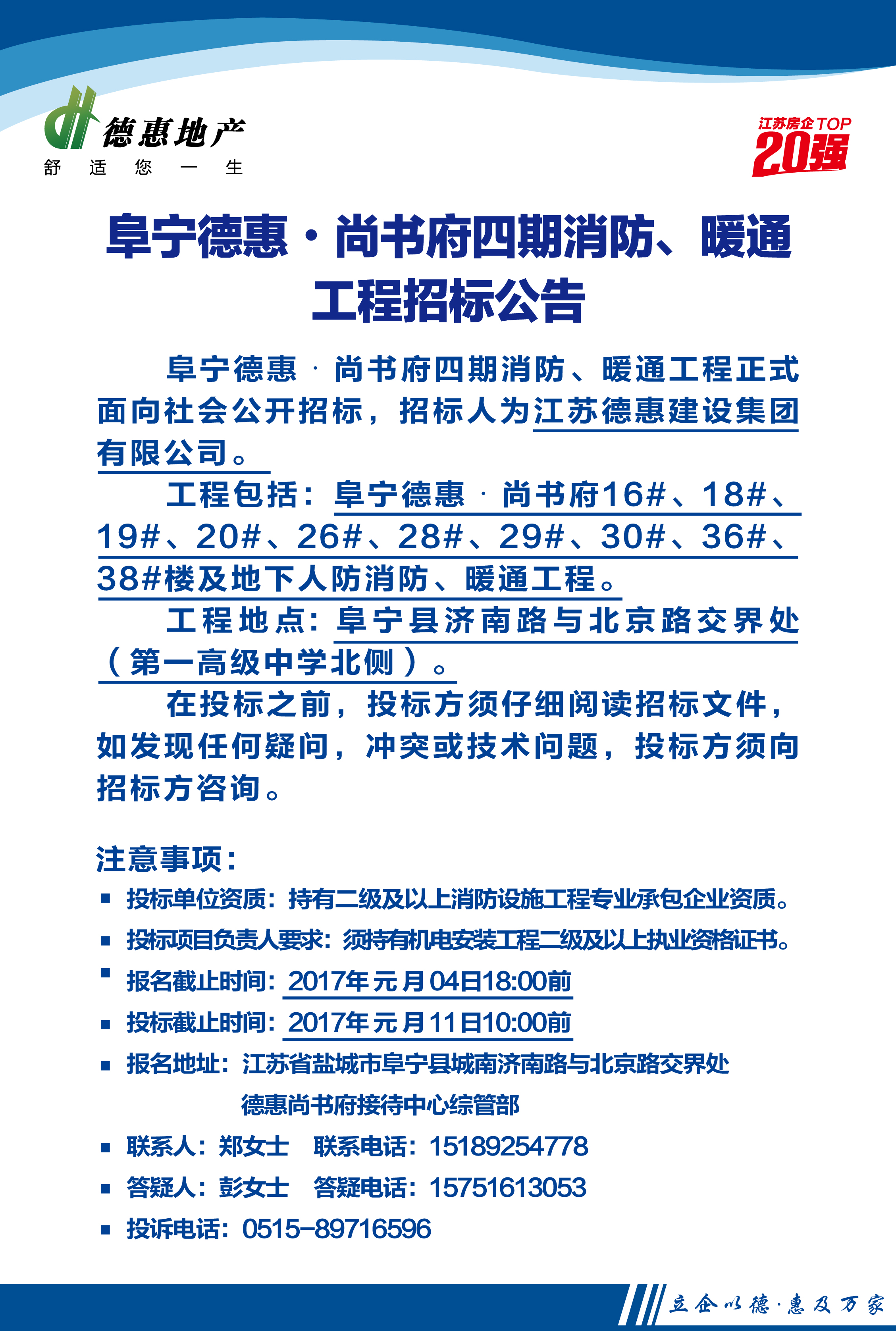 阜寧德惠•尚書府四期消防、暖通工程招標(biāo)公告及文件