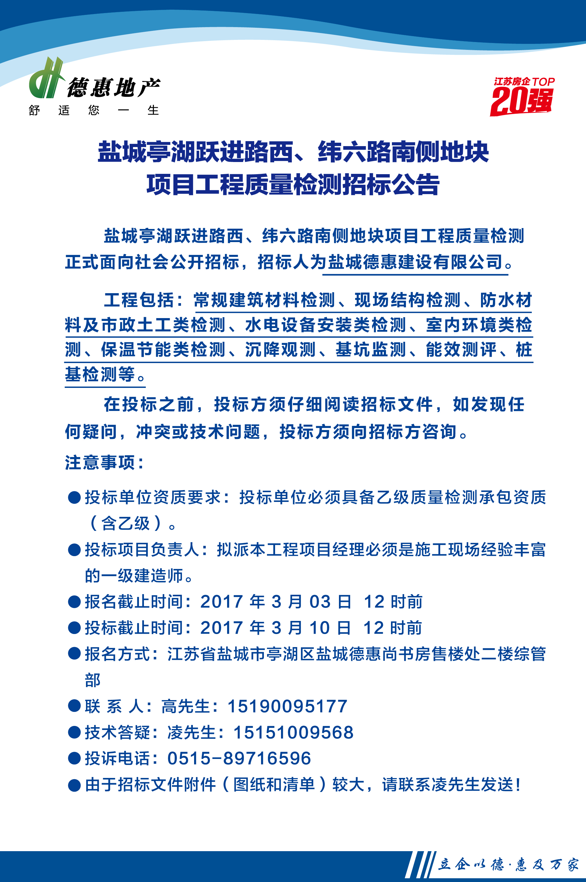 鹽城亭湖躍進(jìn)路西、緯六路南側(cè)地塊項(xiàng)目工程質(zhì)量檢測(cè)招標(biāo)公告