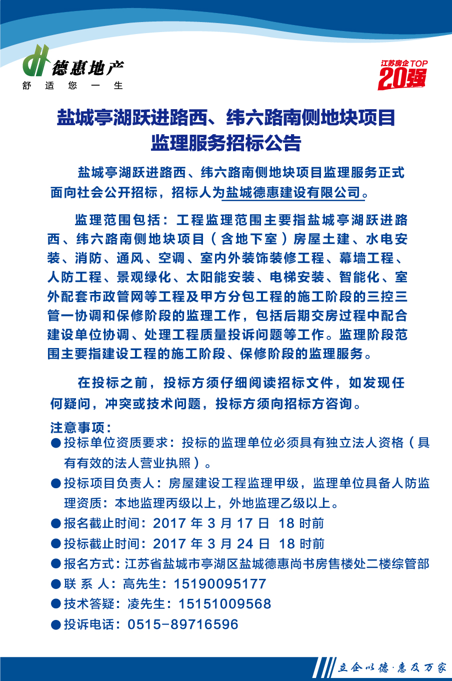 鹽城亭湖躍進路西、緯六路南側(cè)地塊項目監(jiān)理服務招標公告