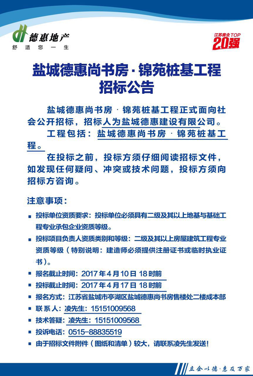 鹽城德惠尚書房•錦苑樁基工程招標公告