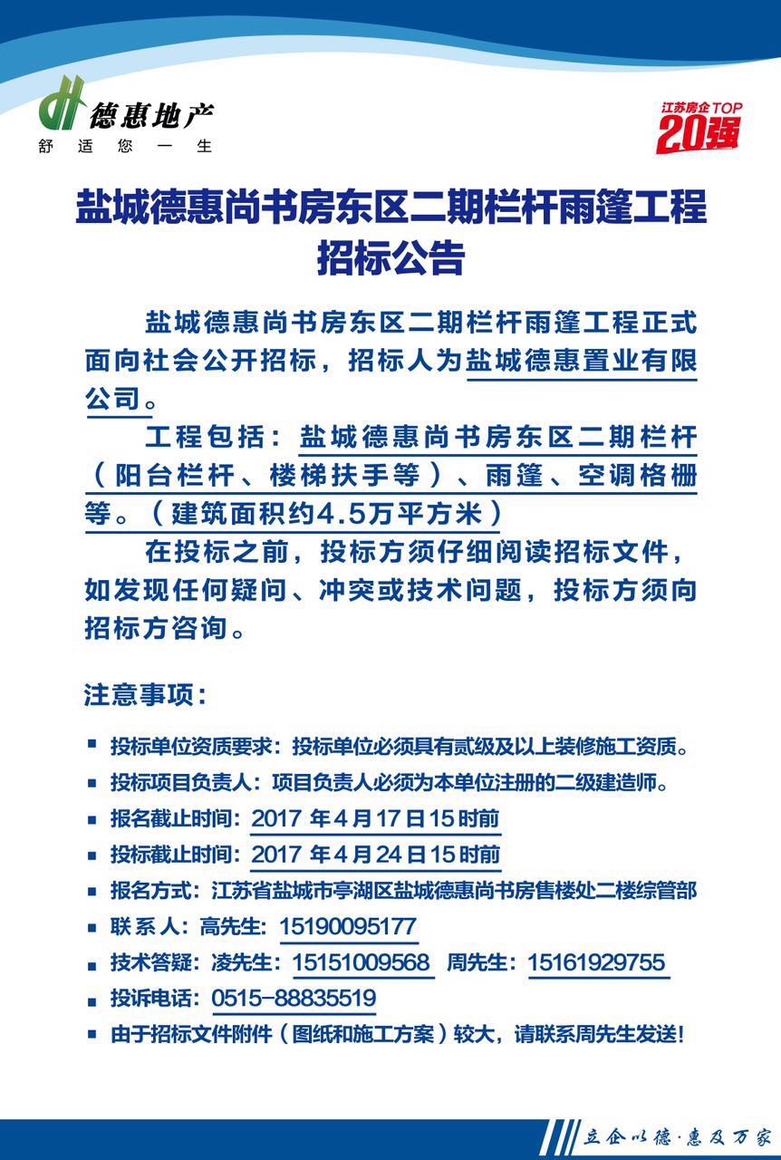 鹽城德惠尚書房東區(qū)二期欄桿雨篷工程招標公告