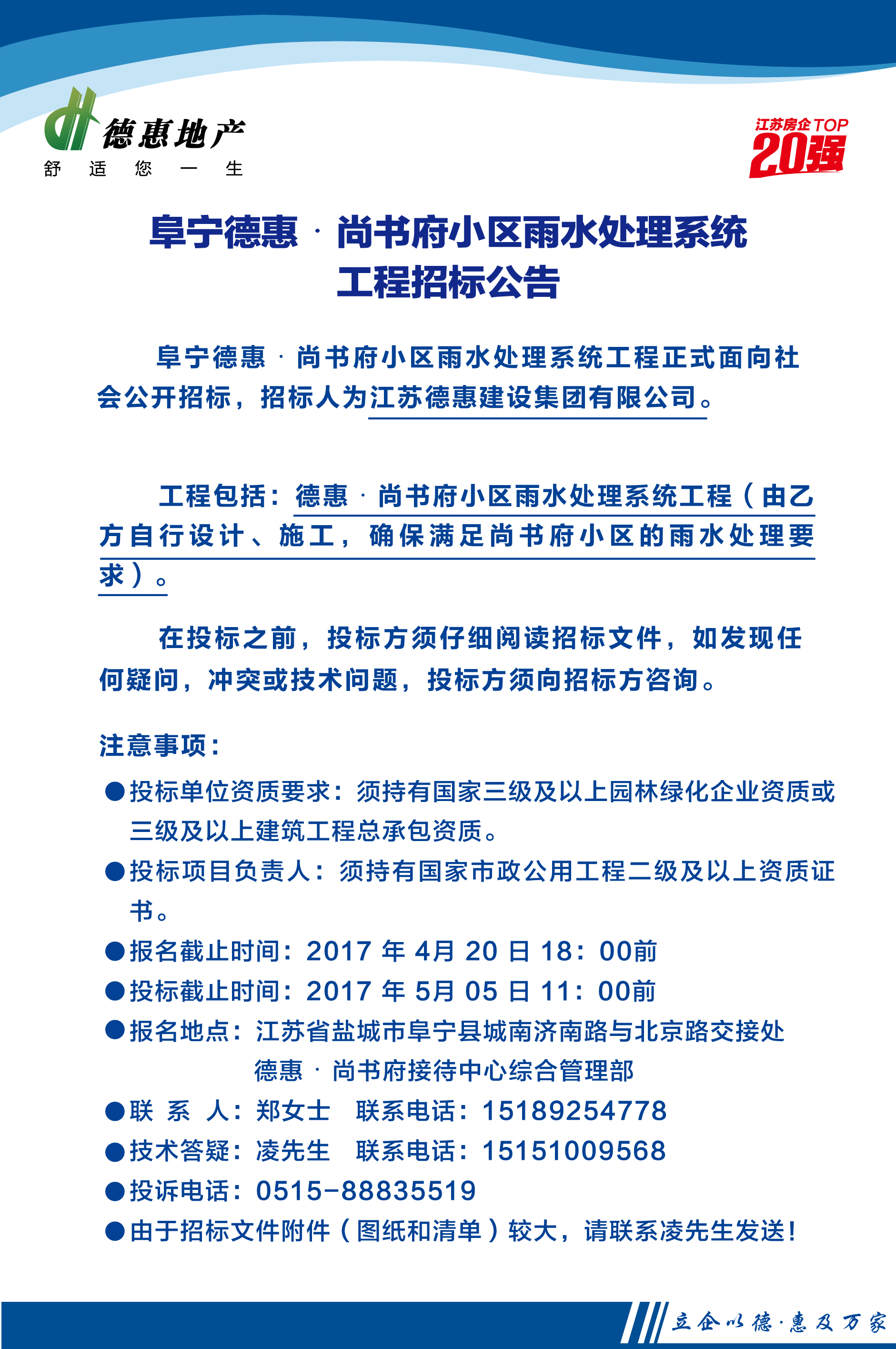 阜寧德惠•尚書府小區(qū)雨水處理系統(tǒng)工程招標(biāo)公告