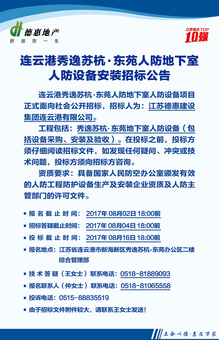 連云港秀逸蘇杭·東苑人防地下室人防設(shè)備安裝招標(biāo)公告