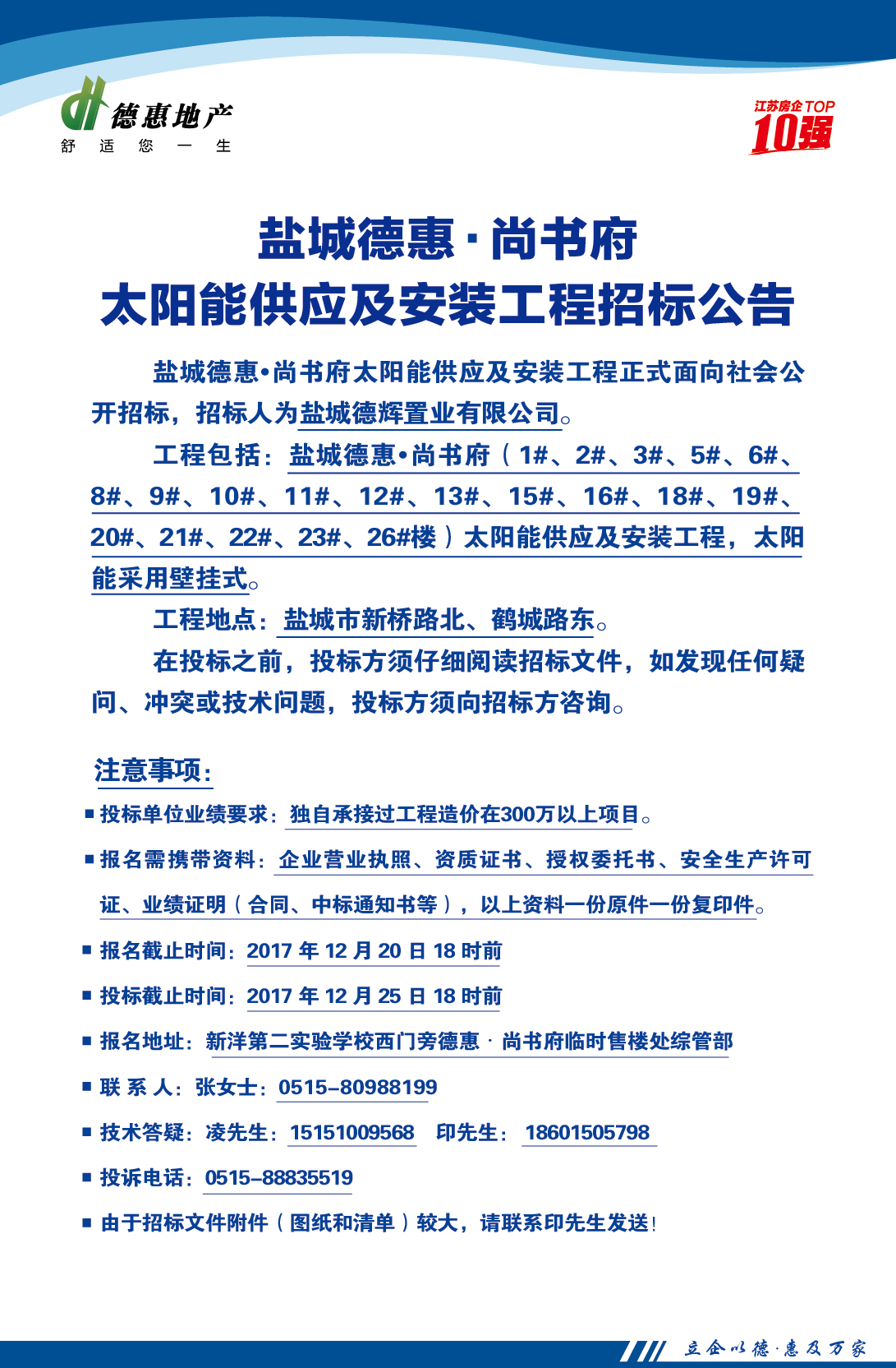 鹽城德惠·尚書府太陽能供應(yīng)及安裝工程招標(biāo)公告