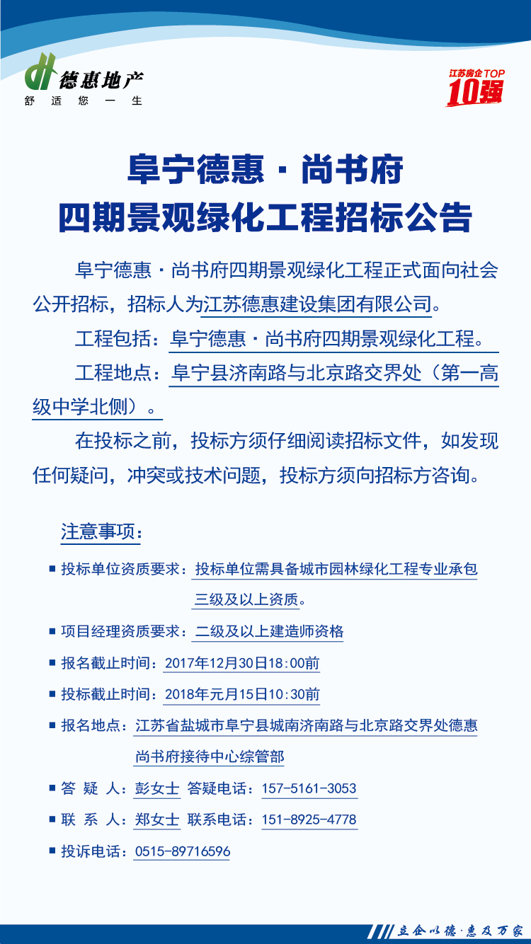 阜寧德惠·尚書府四期景觀綠化工程招標(biāo)公告