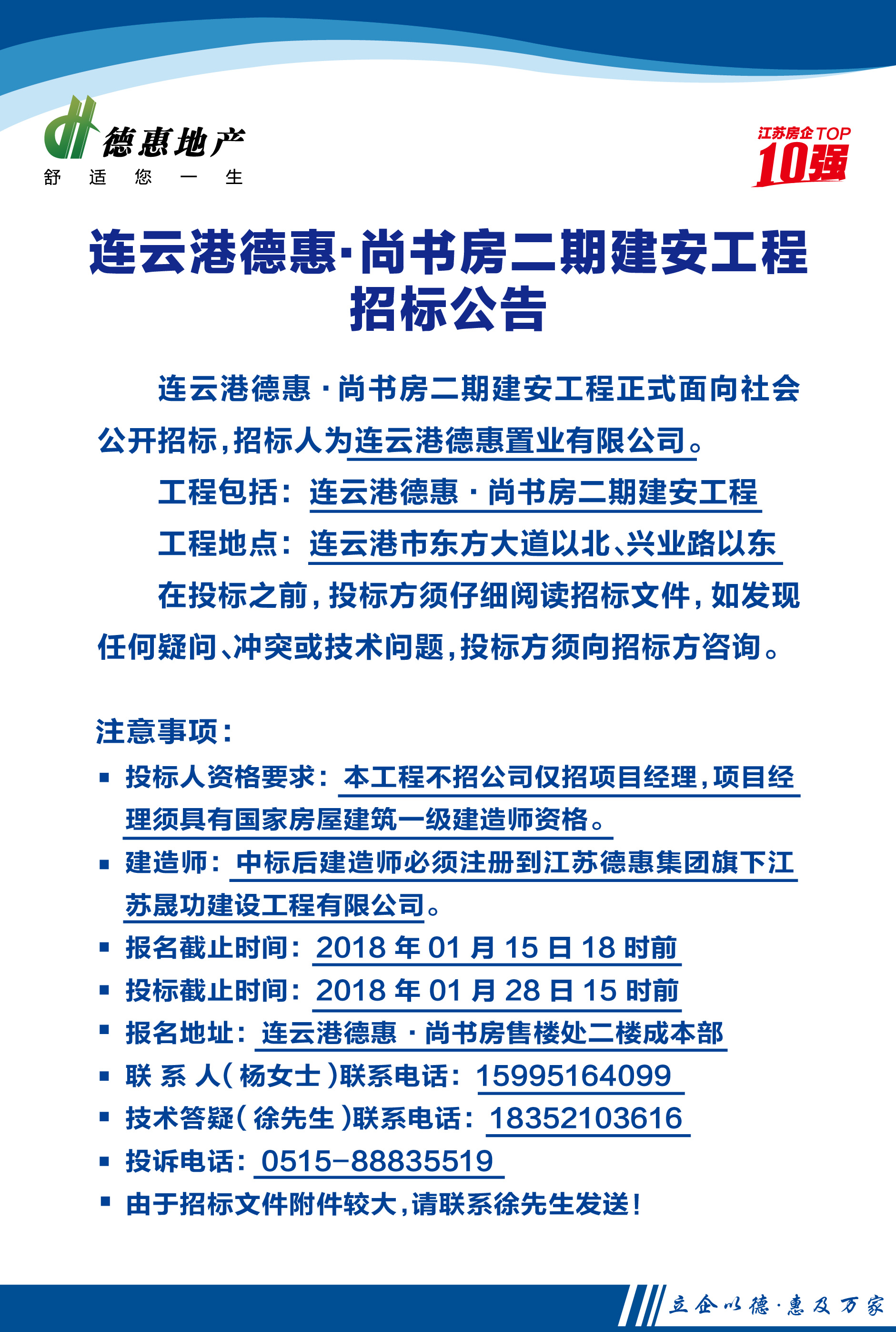 連云港德惠·尚書房二期建安工程招標(biāo)公告