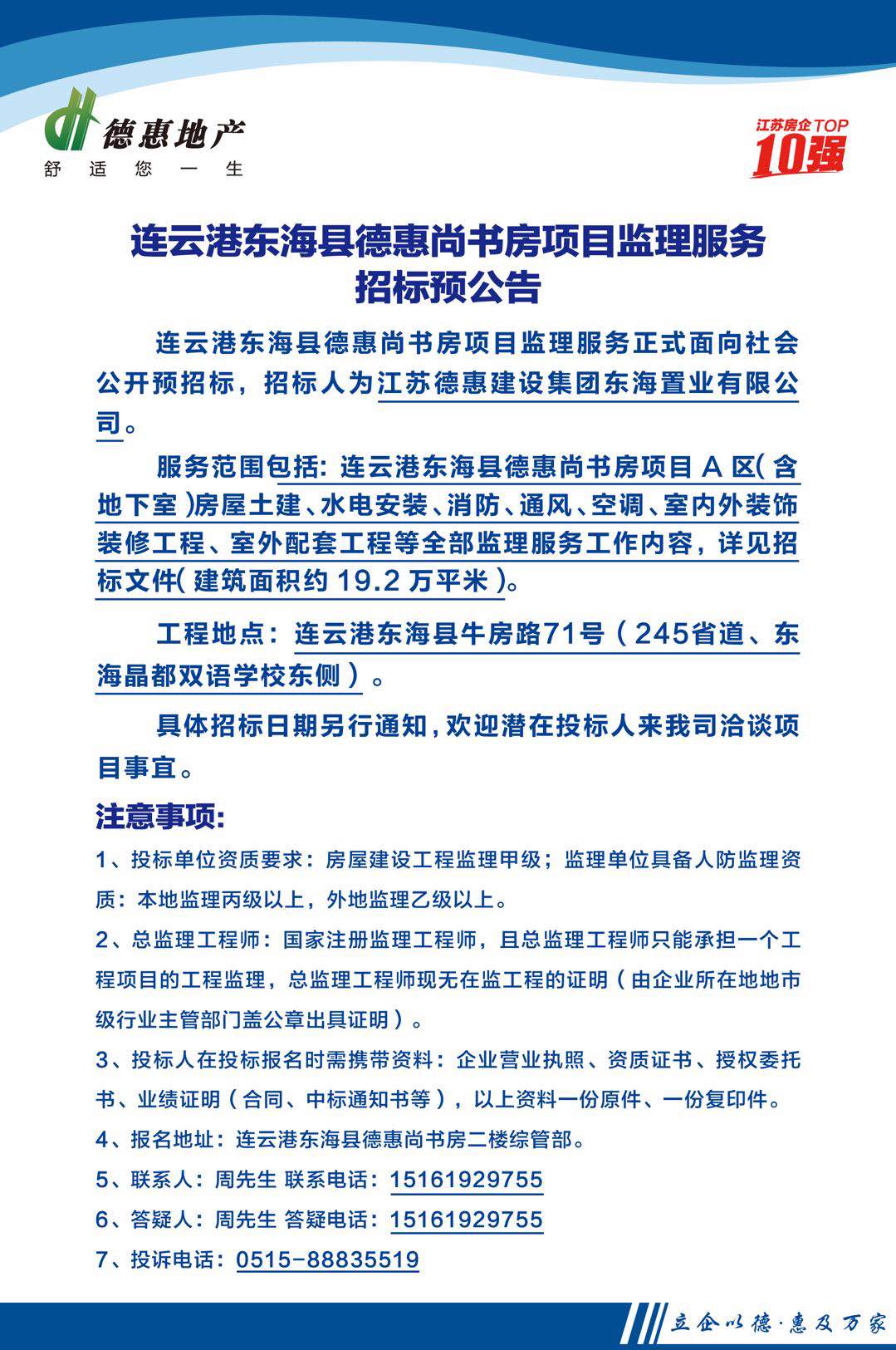 連云港東??h德惠尚書房項目監(jiān)理服務招標預公告