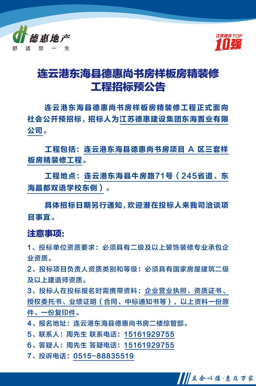 連云港東??h德惠尚書房樣板房精裝修工程招標(biāo)預(yù)公告