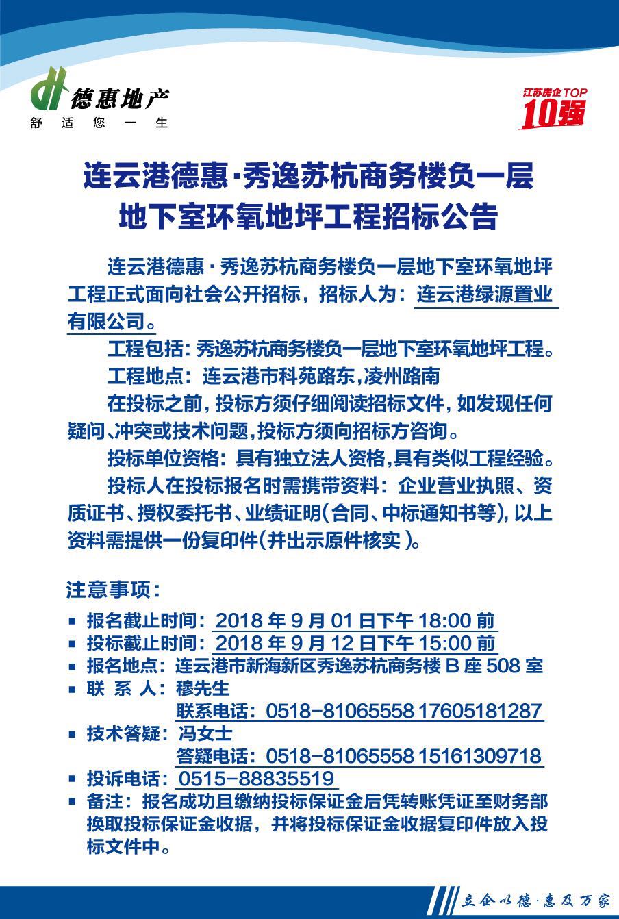 連云港德惠·秀逸蘇杭商務(wù)樓負一層地下室環(huán)氧地坪工程招標(biāo)公告