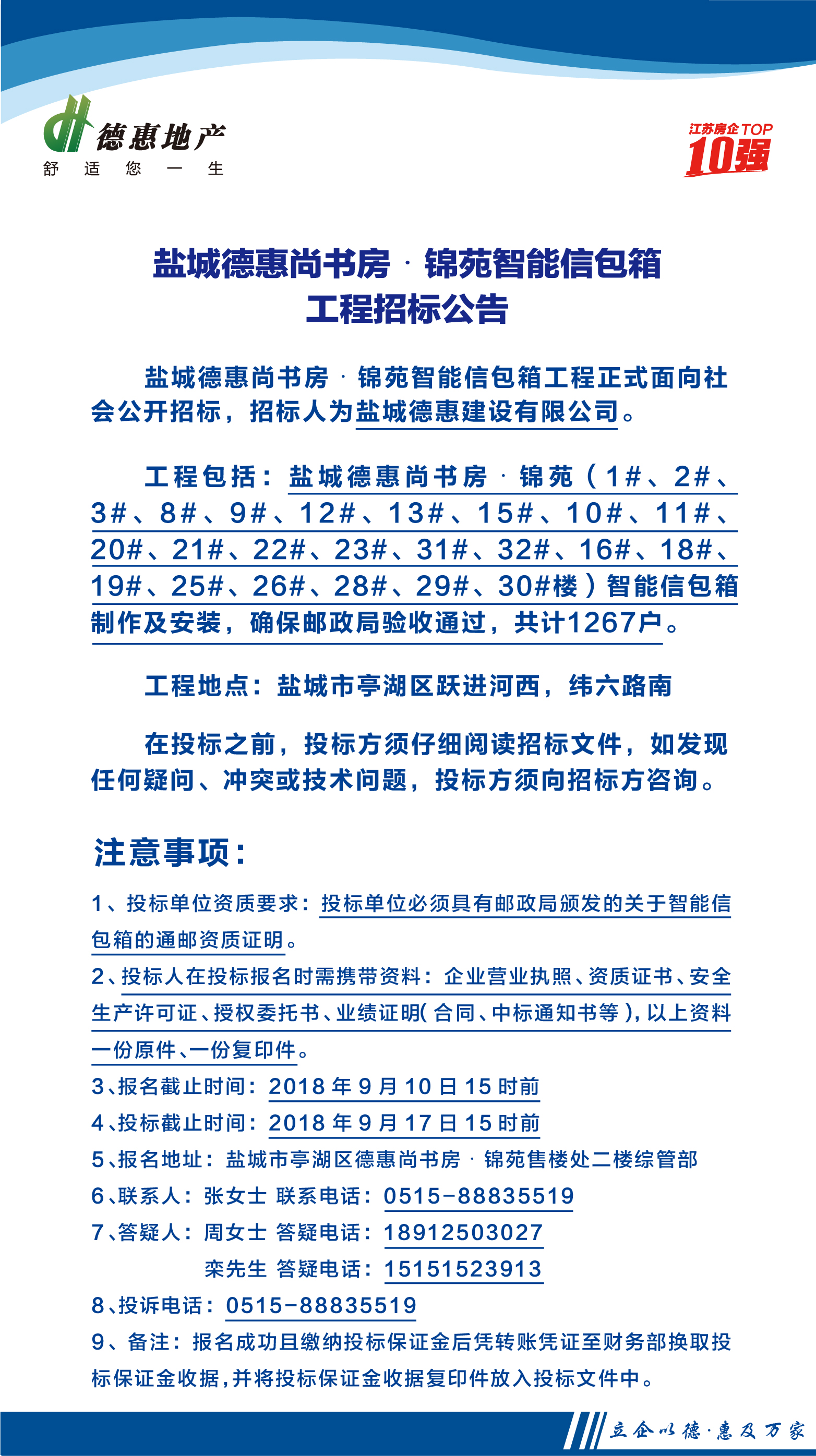 鹽城德惠尚書房•錦苑智能信包箱工程招標(biāo)公告