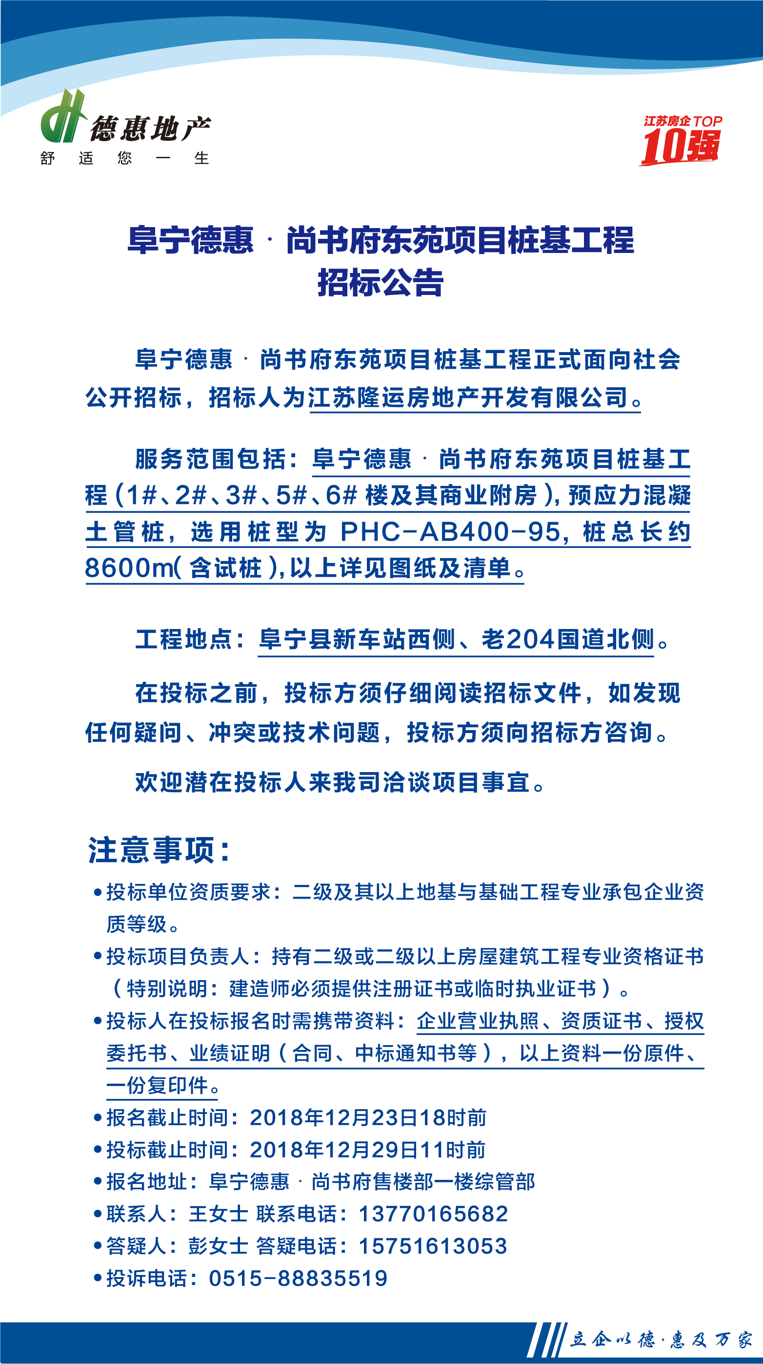 阜寧德惠·尚書府東苑項目樁基工程招標公告