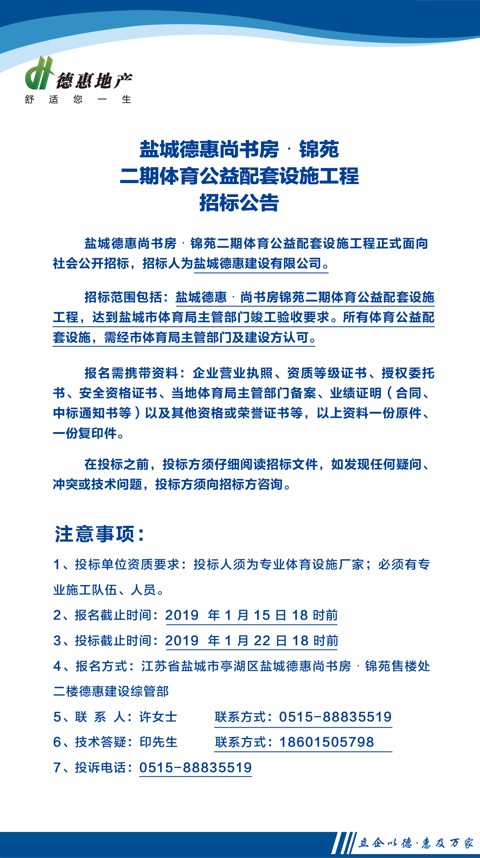 鹽城德惠·尚書府體育公益配套設(shè)施招標(biāo)公告