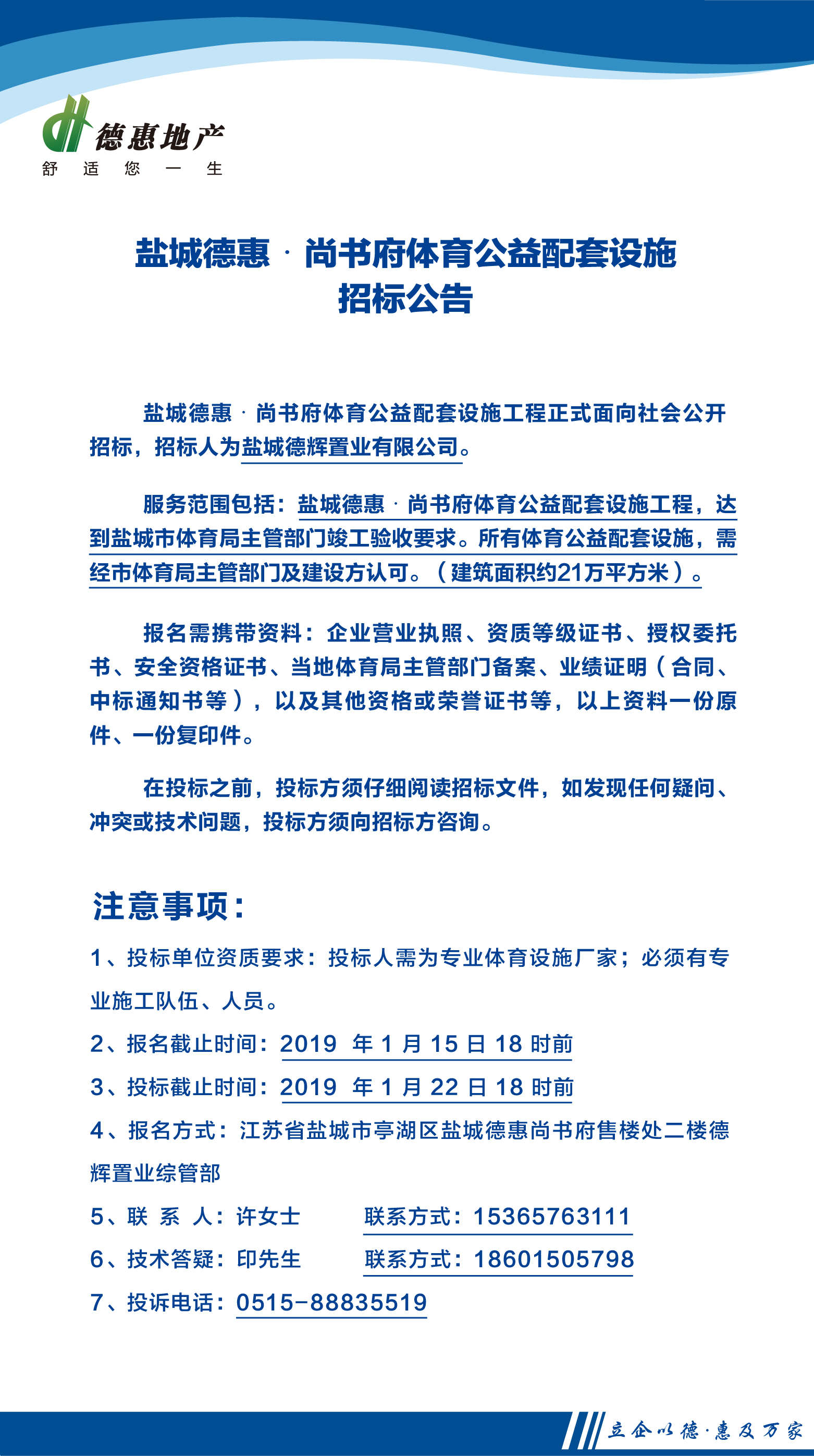 鹽城德惠·尚書府體育公益配套設(shè)施招標(biāo)公告