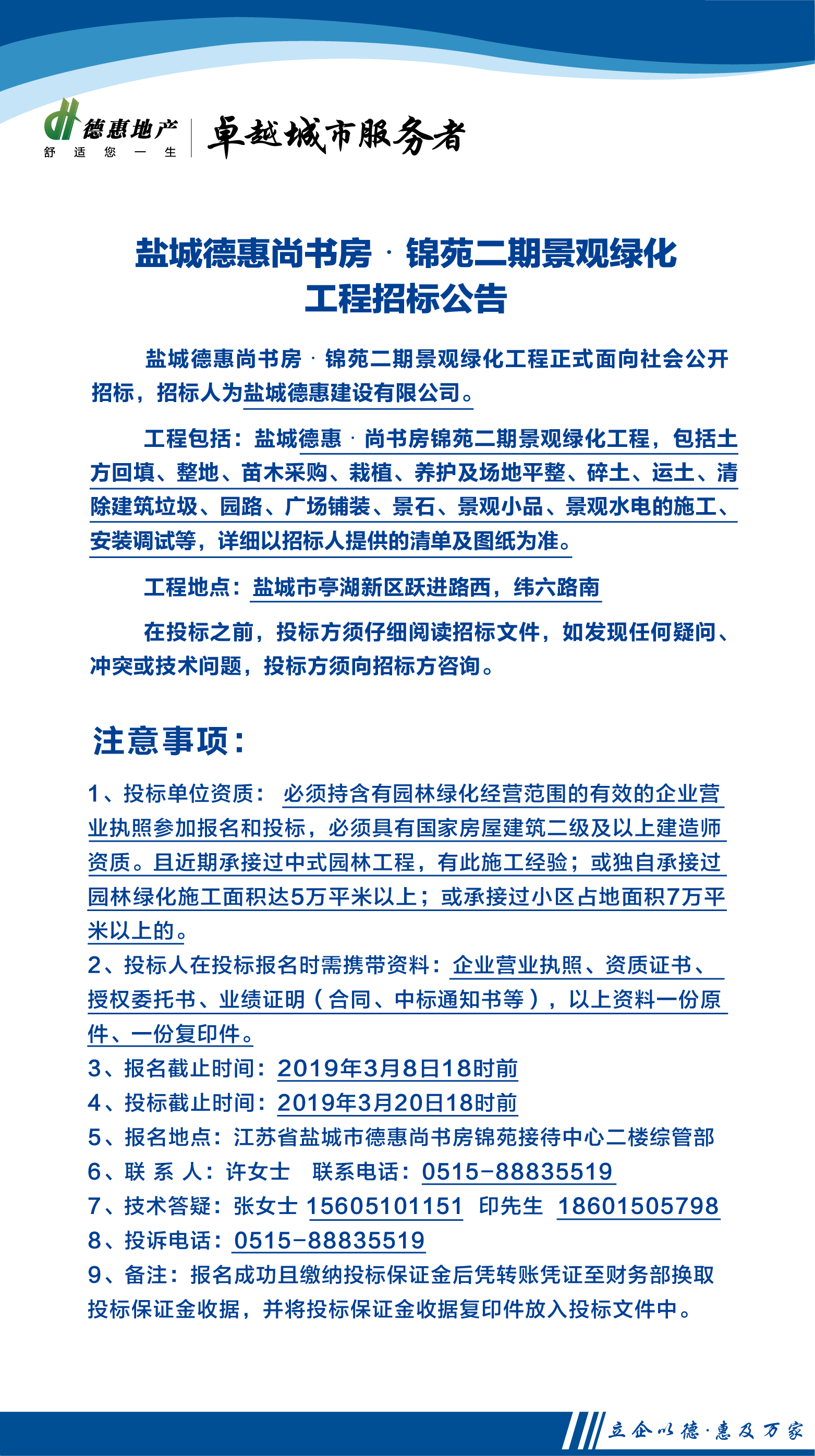 鹽城德惠尚書房·錦苑二期景觀綠化工程招標公告