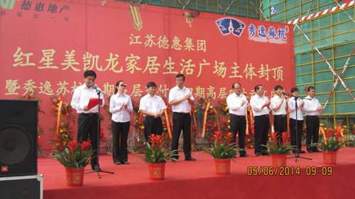 2014年6月5日,江蘇德惠集團(tuán) 紅星美凱龍家居生活廣場主體封頂暨秀逸蘇杭二期多層交付、四期高層破土動(dòng)工慶典圓滿落幕 |