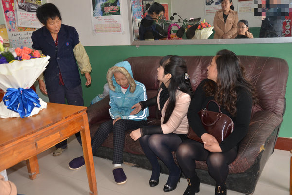 團(tuán)縣委書記何婭婭、我集團(tuán)財(cái)務(wù)總監(jiān)左春蘭向鄧萌外婆了解病情