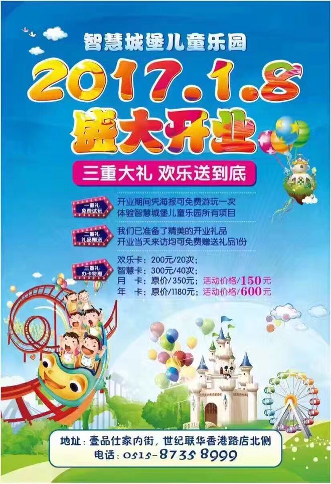 阜寧縣壹品仕家內(nèi)街智慧天地——智慧城堡1月8日盛大開業(yè),誠邀您帶上您的小寶貝一起來游玩?。?!