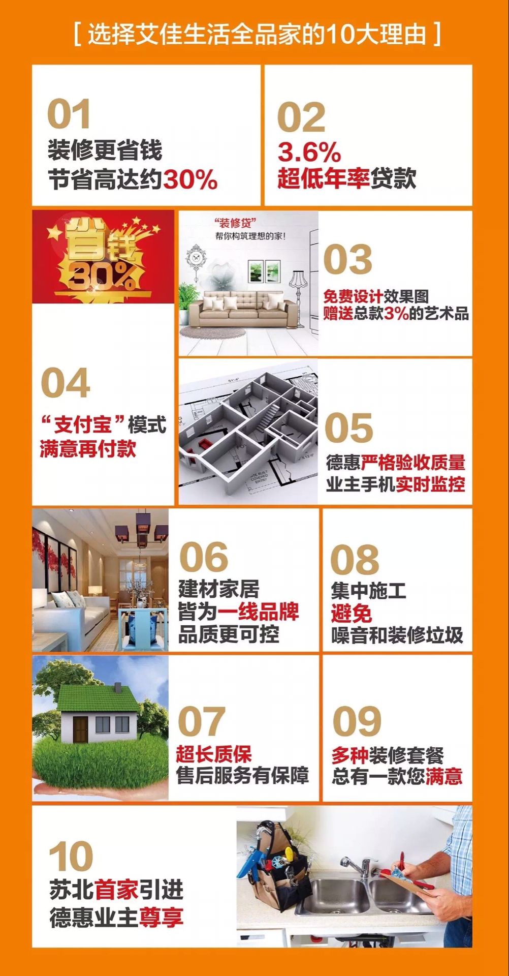 為了解決業(yè)主裝修過程中的“煩、痛、累”,有效降低裝修費用,江蘇德惠集團特將“艾佳生活”首家引入蘇北,助力“城市服務(wù)商”戰(zhàn)略再升級,為業(yè)主帶來“省錢、省力、省心”的全新裝修和生活方式! 艾佳生活采用“定制化+個性化”家裝模式,與全國數(shù)十家一線知名房企戰(zhàn)略合作,直接向品牌家具建材廠商規(guī)?;少彛挥善放萍已b公司流水化施工,大大降低裝修成本。讓業(yè)主在裝修省錢達30%的基礎(chǔ)上,實現(xiàn)“拎包入住”的夢想。
