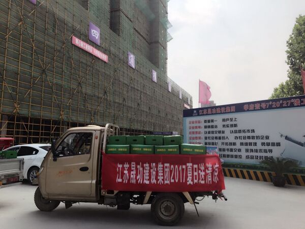 炎炎夏日,驕陽似火也擋不住晟功集團領(lǐng)導(dǎo)心系建設(shè)一線員工的匆匆腳步。2017年5月31日下午,為做好夏季安全生產(chǎn)工作,確保一線員工安全度夏,江蘇晟功建設(shè)集團開展了“夏日送清涼”活動。一輛輛載著香甜可口大西瓜的卡車駛進了江蘇晟功建設(shè)集團的各項目部工地,給員工們送來了“清涼”,也帶來了集團領(lǐng)導(dǎo)們的熱切關(guān)懷。