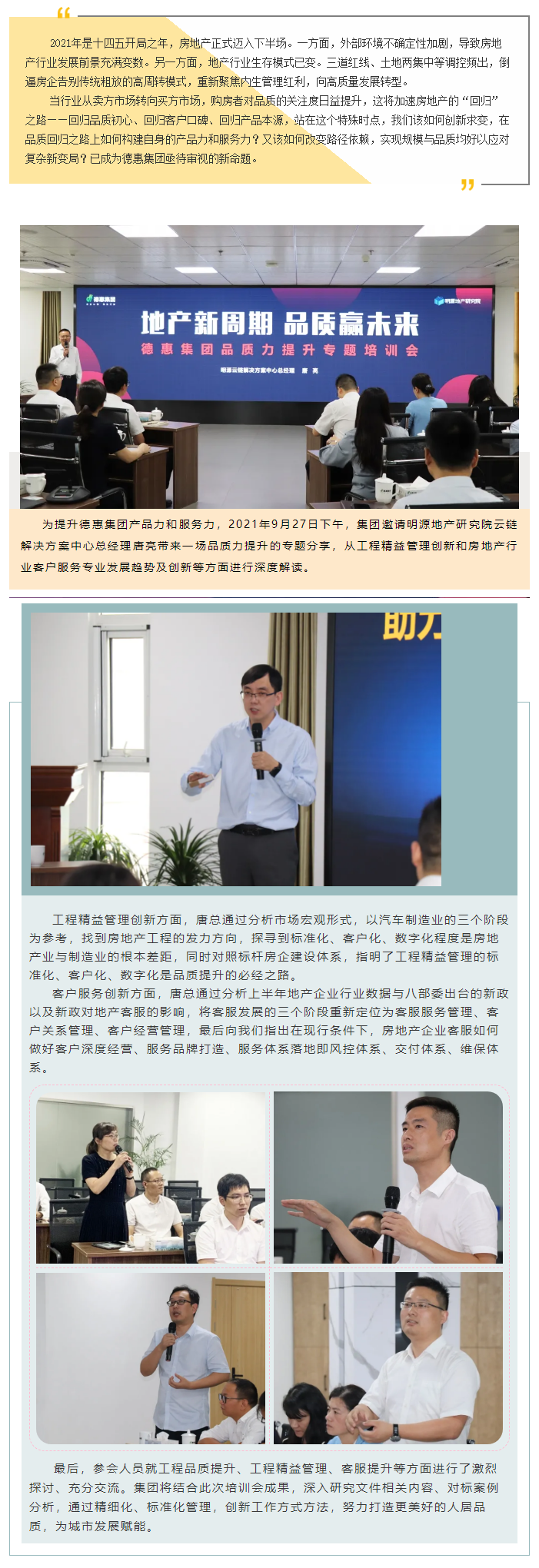 地產(chǎn)新周期 品質(zhì)贏未來 | 德惠集團(tuán)開展品質(zhì)力專題培訓(xùn)