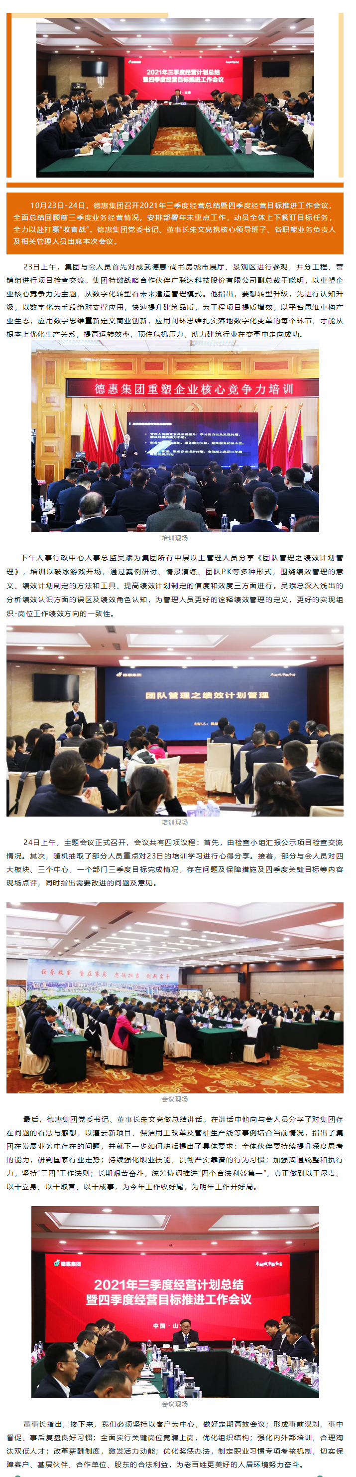 立足自身 實干有為 | 德惠集團召開三季度經(jīng)營總結暨四季度經(jīng)營目標推進工作會議