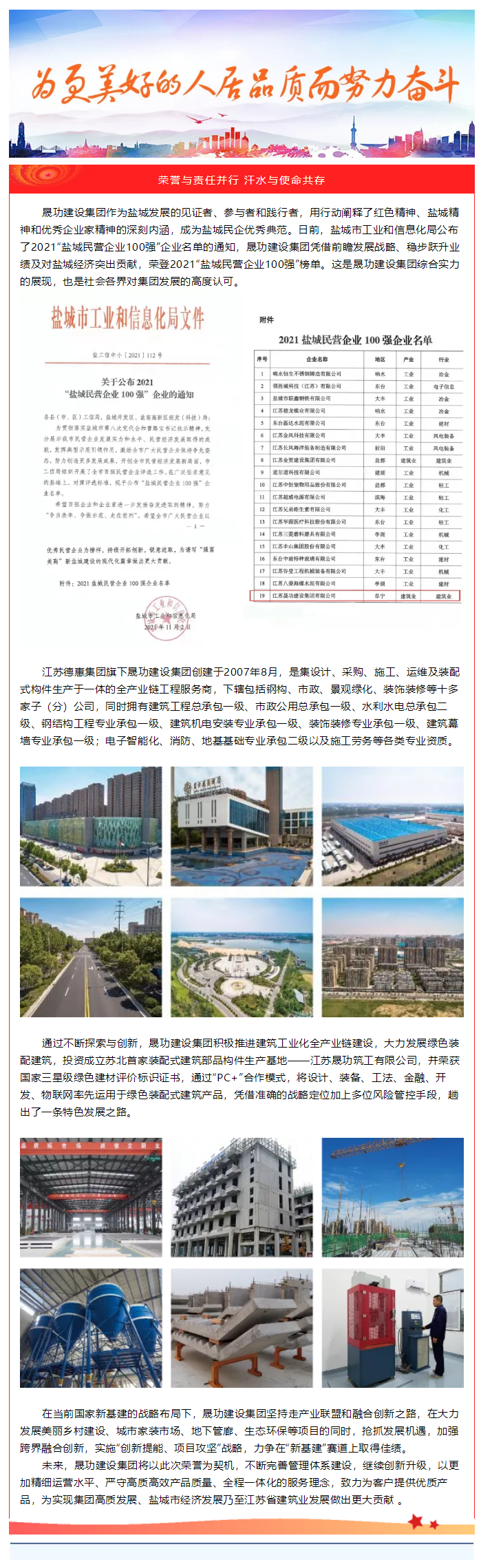 喜報!熱烈祝賀晟功建設(shè)集團榮膺2021“鹽城民營企業(yè)100強”榮譽稱號!