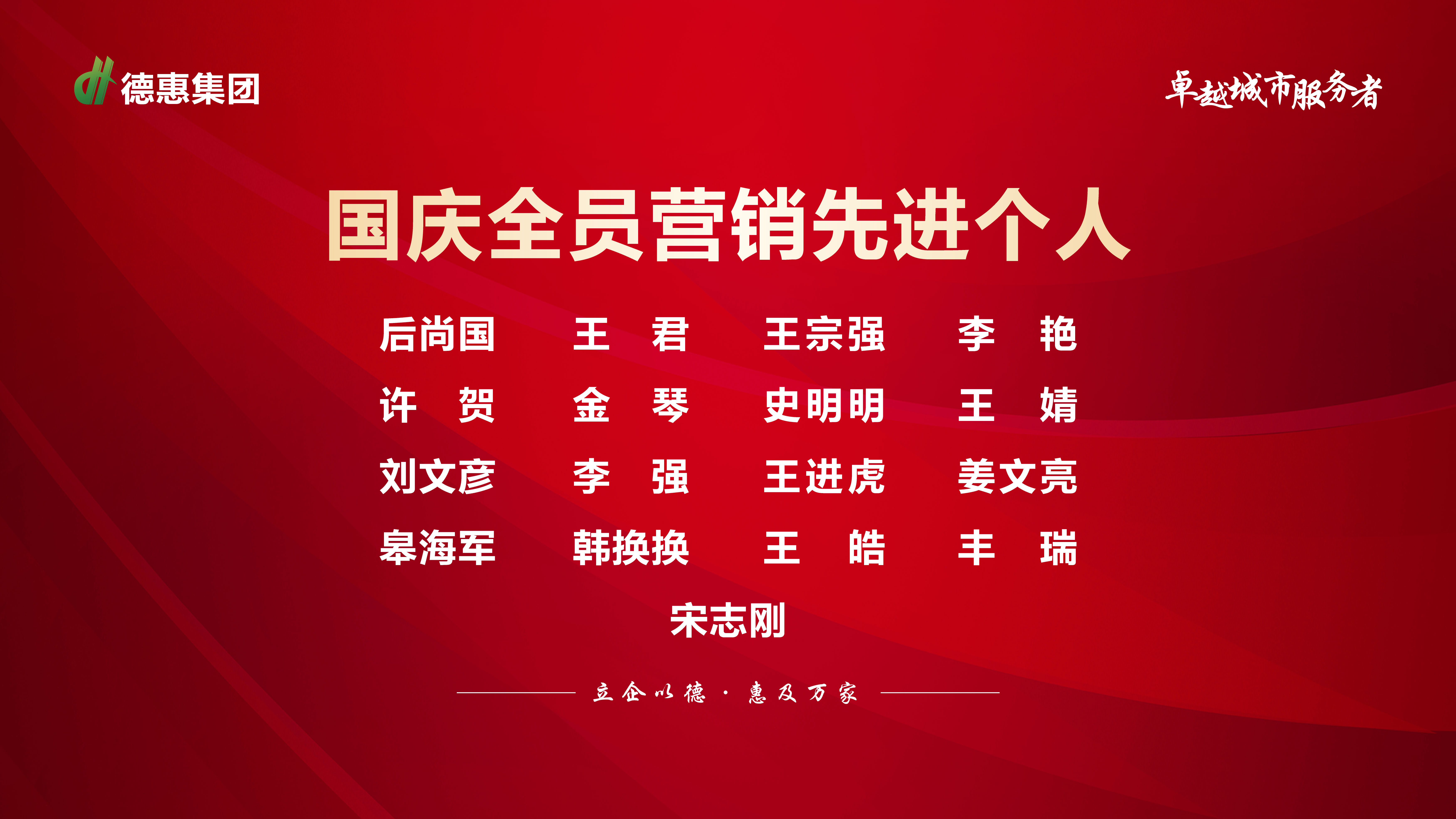 隨后,為樹(shù)立標(biāo)桿,表彰先進(jìn),集團(tuán)對(duì)國(guó)慶黃金銷售期中業(yè)績(jī)明顯、思想站位高、解決問(wèn)題能力強(qiáng)的17位全員營(yíng)銷先進(jìn)模范進(jìn)行表彰。