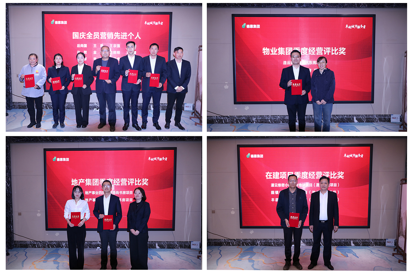 此外,會(huì)議對(duì)第三季度物業(yè)板塊經(jīng)營(yíng)評(píng)比中的第一名連云港秀逸蘇杭東苑項(xiàng)目(獎(jiǎng)金3000元),第二名豐縣尚書(shū)房項(xiàng)目(獎(jiǎng)金2000元);地產(chǎn)集團(tuán)經(jīng)營(yíng)評(píng)比中的第一名地產(chǎn)事業(yè)四部連云港尚書(shū)房項(xiàng)目(獎(jiǎng)金10000元),第二名地產(chǎn)事業(yè)二部成武尚書(shū)房項(xiàng)目(獎(jiǎng)金8000元);晟功自營(yíng)項(xiàng)目綜合評(píng)比中的第一名灌云維密小鎮(zhèn)53#地塊周威項(xiàng)目部(獎(jiǎng)金8000元);地產(chǎn)在建項(xiàng)目綜合評(píng)比中的第一名固鎮(zhèn)尚書(shū)府三期陳光磊項(xiàng)目部(獎(jiǎng)金8000元),第二名豐縣尚書(shū)房二期張奧然項(xiàng)目部(獎(jiǎng)金6000元)進(jìn)行現(xiàn)場(chǎng)頒獎(jiǎng)。另外因集團(tuán)經(jīng)營(yíng)管理工作需要,會(huì)議宣讀了《關(guān)于組織架構(gòu)及人員任命調(diào)整的通知》。